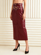 Trend4us Luxe Studded Faux Leather Midi Skirt