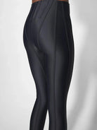 The high-rise waistband provides secure support and a flattering cinched look, while the paneled contour seams create a structured, modern aesthetic. perfect for night-out styling, streetwear fits, or upscale athleisure.