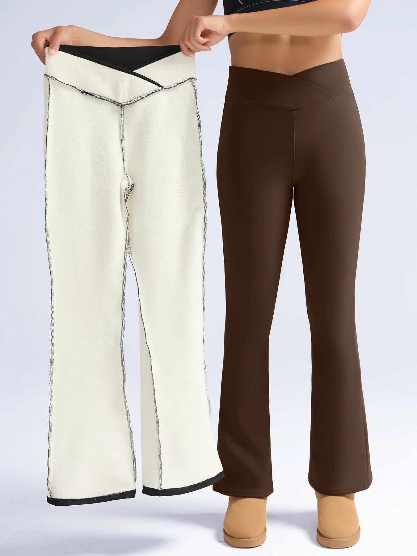 Trend4us Winter Fleece-Lined High-Waisted Flare Leggings