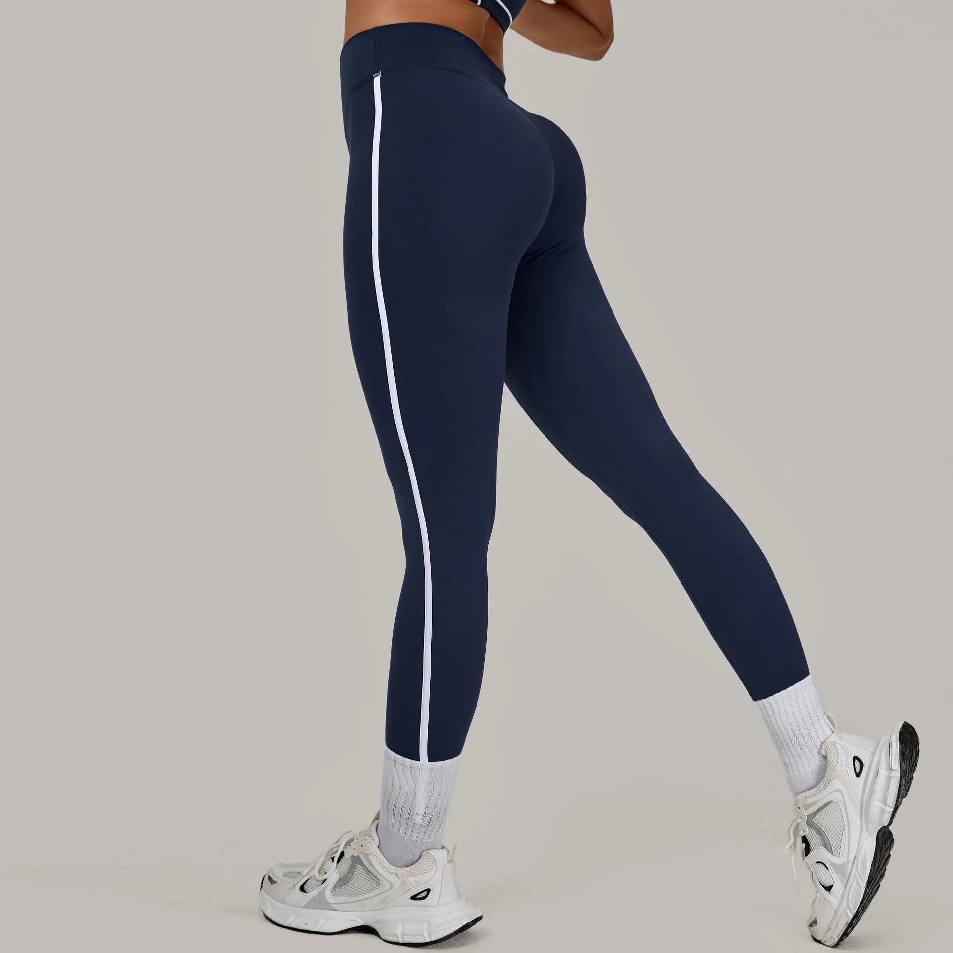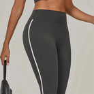 Featuring a bold contrast stripe down the sides, they elongate the legs and add a sporty, modern edge. The seamless, second-skin fit ensures maximum comfort with no irritation, while the high-stretch fabric provides compression, tummy control, and unrestricted flexibility.