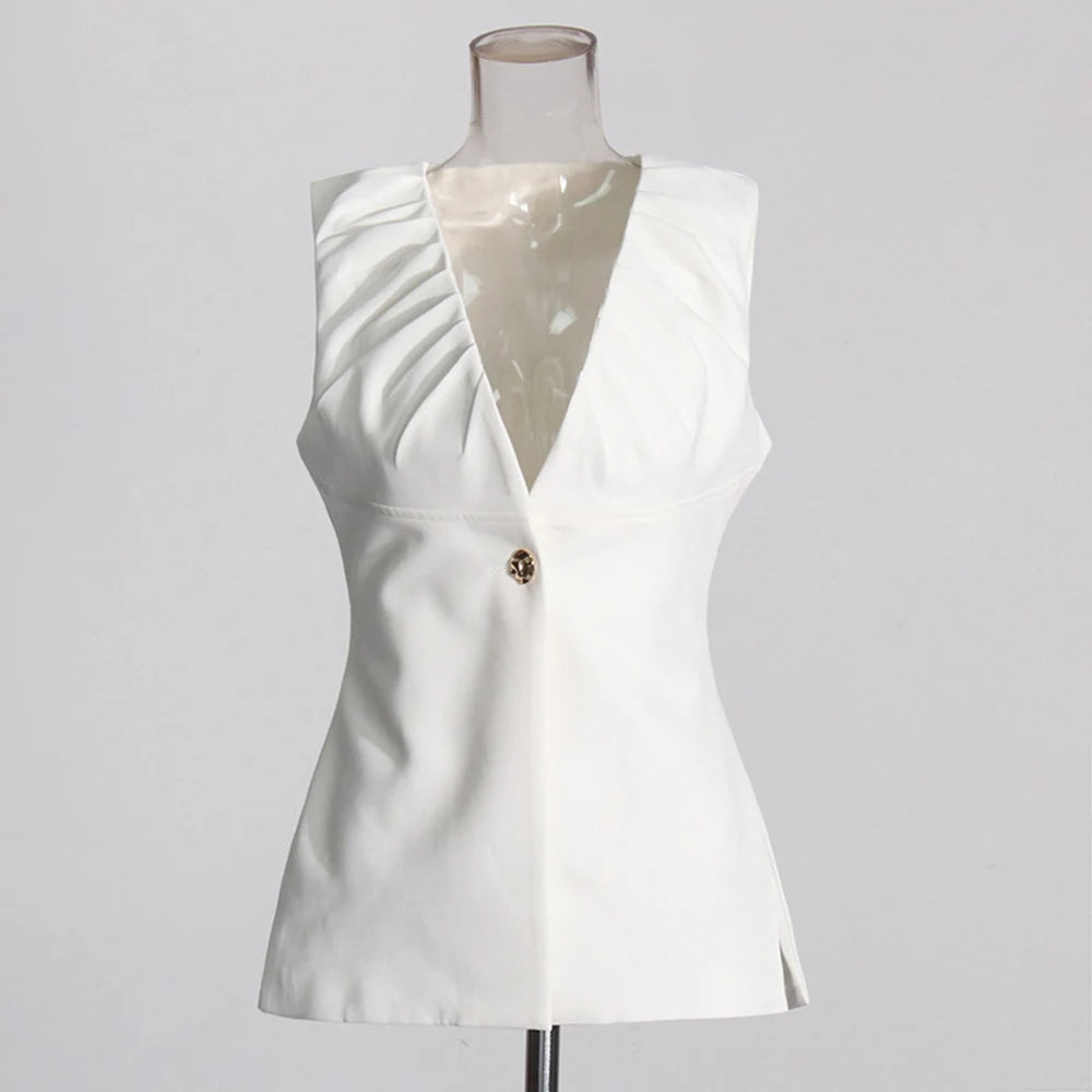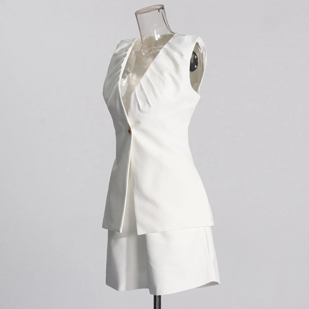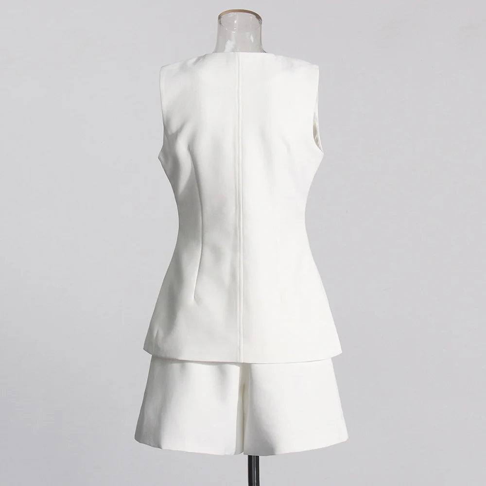 Trend4us Women's Sleeveless Blazer and Shorts Set