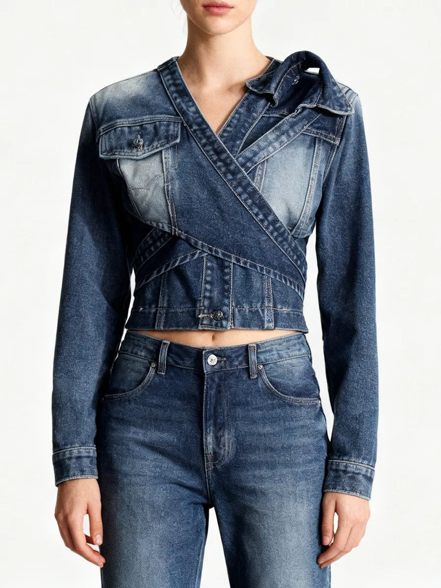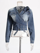 Trend4us Chic Wrap-Front Cropped Denim Jacket