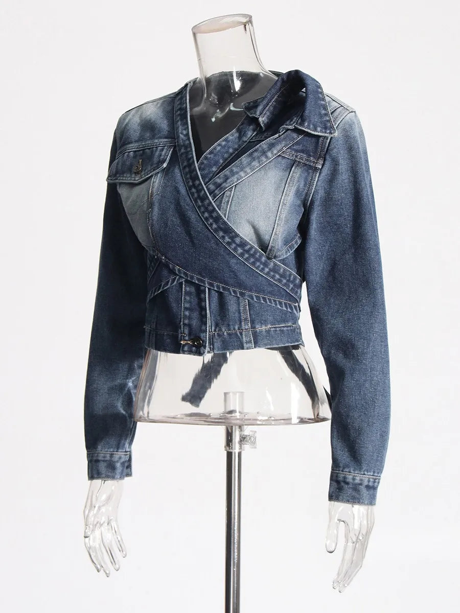 Redefine casual elegance with the Trend4us Chic Wrap-Front Cropped Denim Jacket, a modern twist on a timeless classic. This unique piece features a cross-wrap front design that cinches the waist, creating a flattering and structured silhouette.