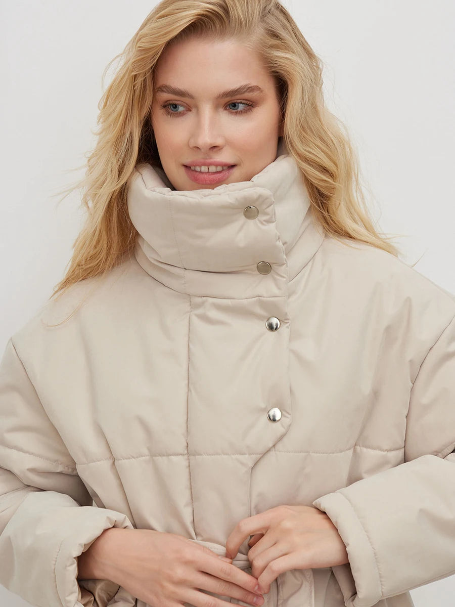 Trend4us Elegant Belted High-Collar Puffer Coat