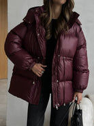 Trend4us Luxe Glossy Hooded Puffer Jacket