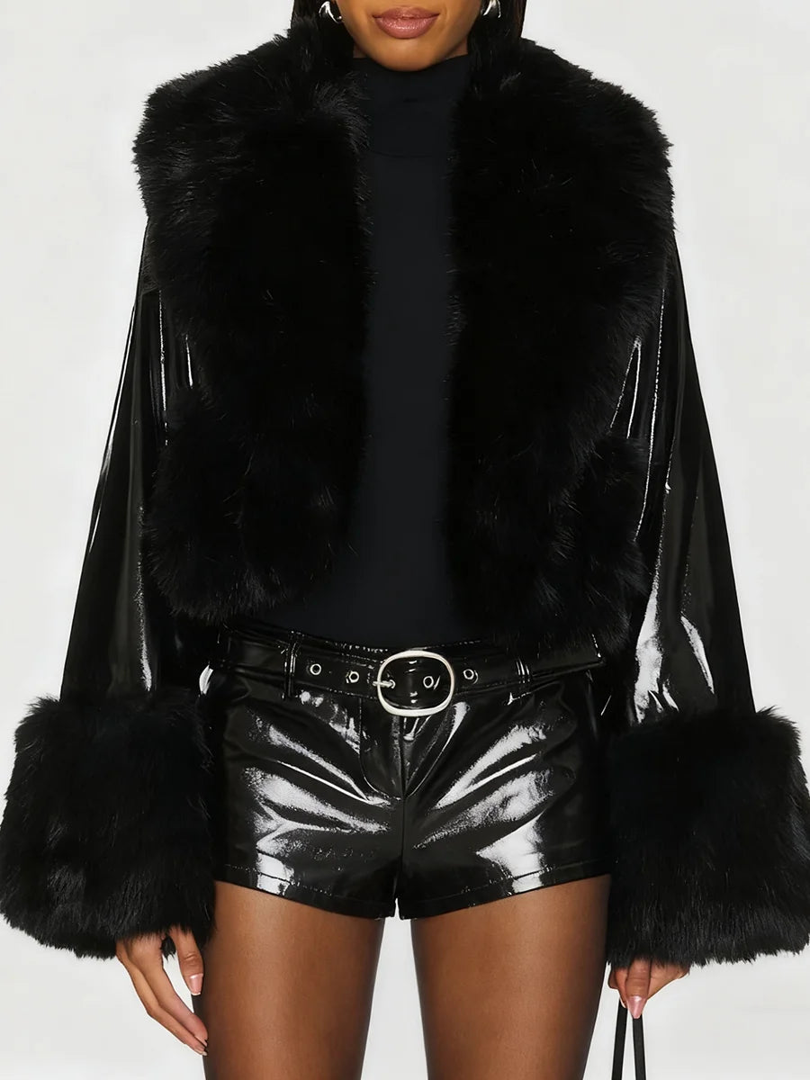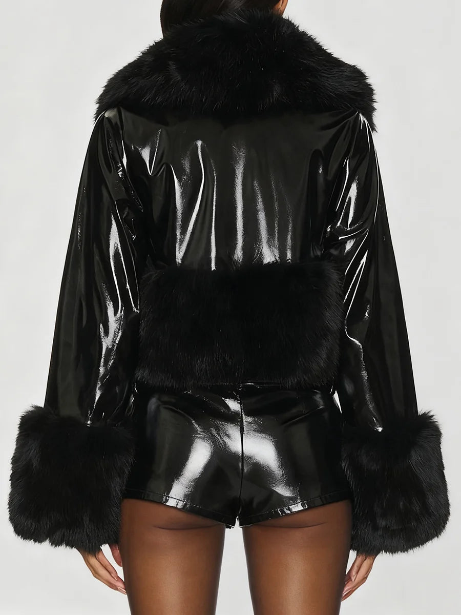 Trend4us Luxe Patent Faux Fur Trim Jacket