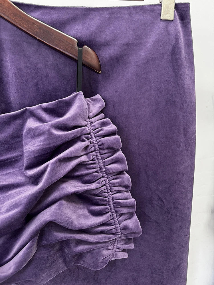 Trend4us Asymmetric Pleated Velvet Two-Piece Set