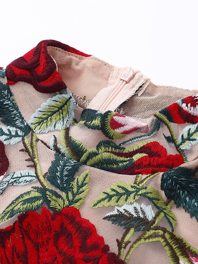 This elegant Embroidered Lace Mini Dress features delicate embroidery and lace details, adding a touch of sophistication to any occasion. Made from high-quality materials, it offers a comfortable and flattering fit. Perfect for a formal event or a night out, the dress is sure to make a statement and enhance your style.