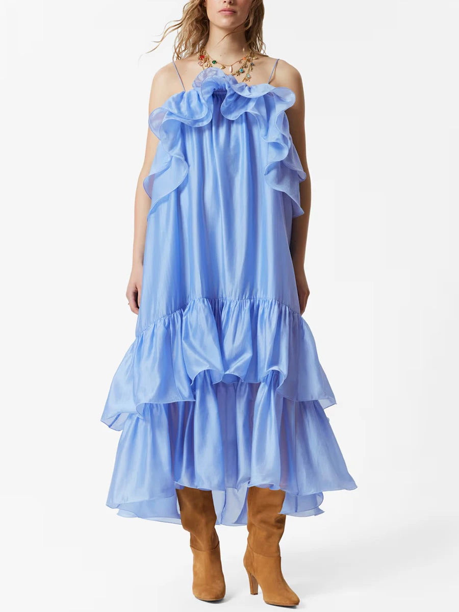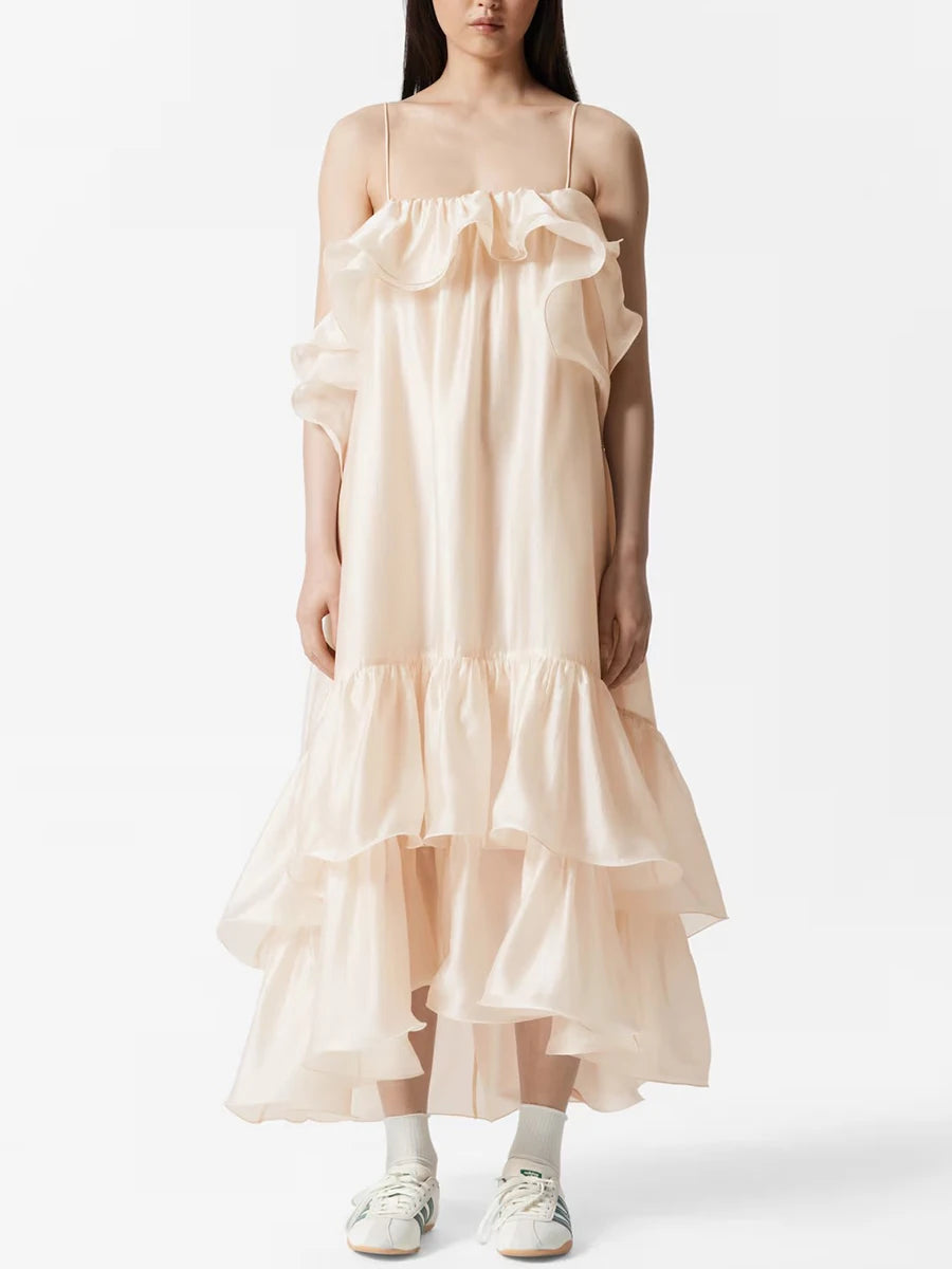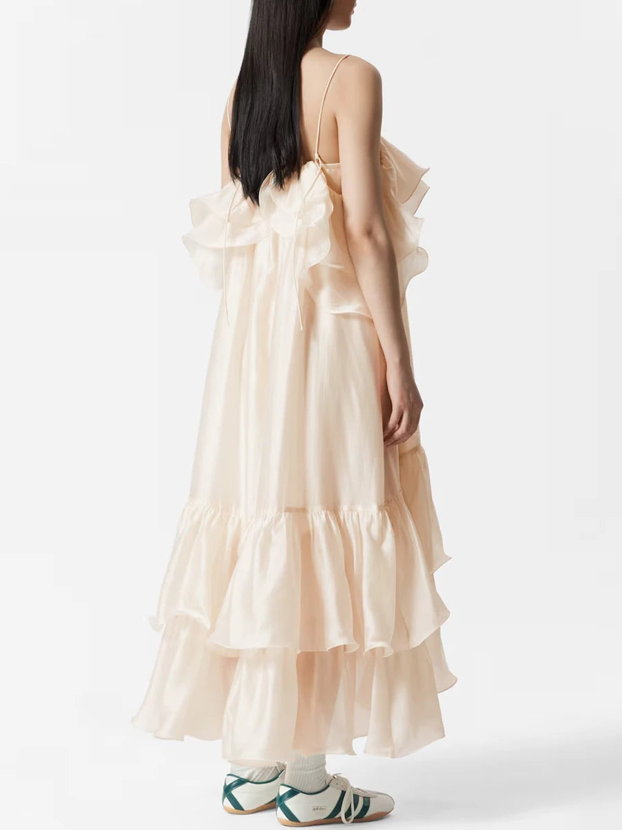 Trend4us Ruffled Tiered Organza Slip Maxi Dress