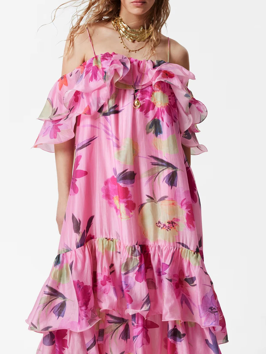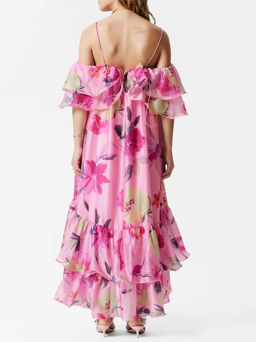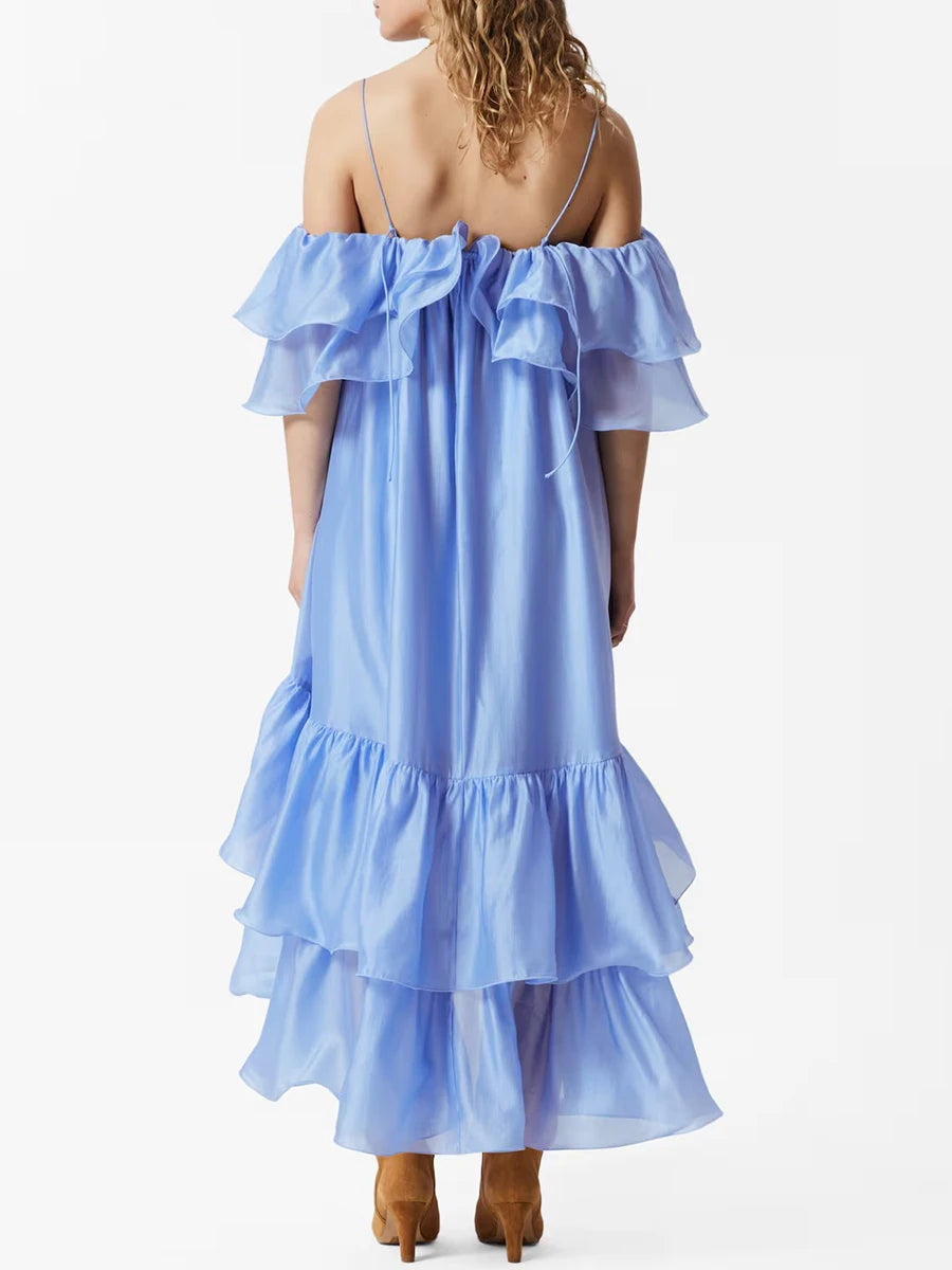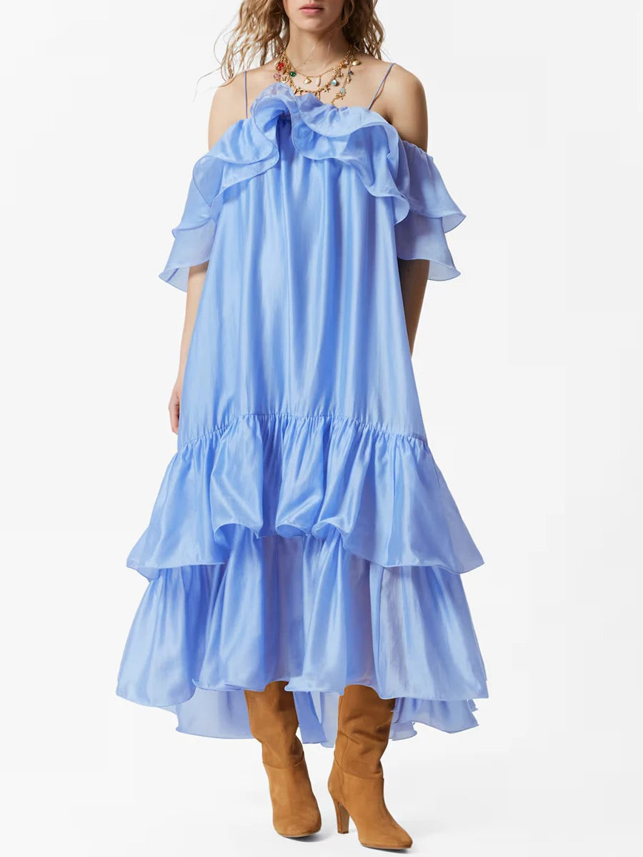 Float into elegance with the Trend4us Ruffled Tiered Organza Slip Maxi Dress — a romantic, voluminous silhouette designed to captivate. Crafted from airy organza, this lightweight maxi dress features cascading ruffle details across the neckline, shoulders, and tiered skirt for a soft, ethereal effect. Delicate spaghetti straps offer a barely-there touch, while the off-shoulder ruffle sleeves add a whimsical twist to its feminine charm.