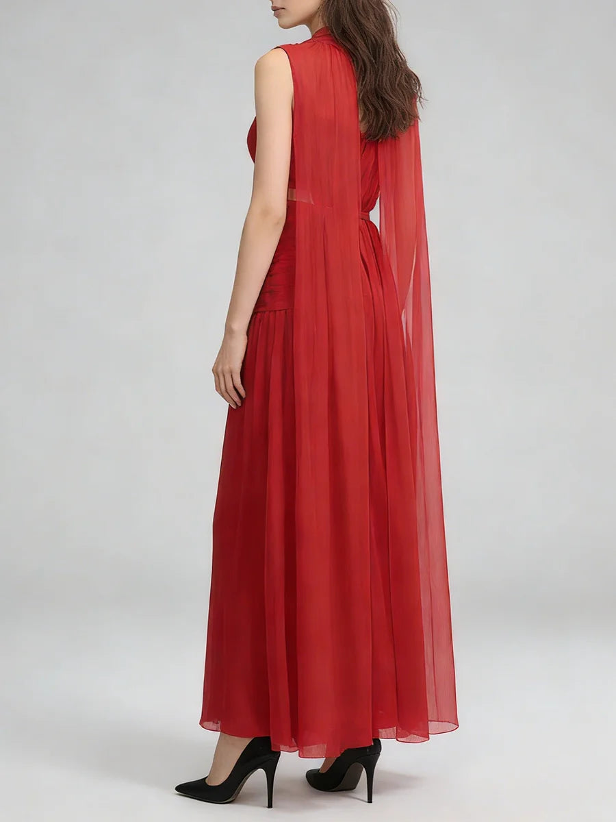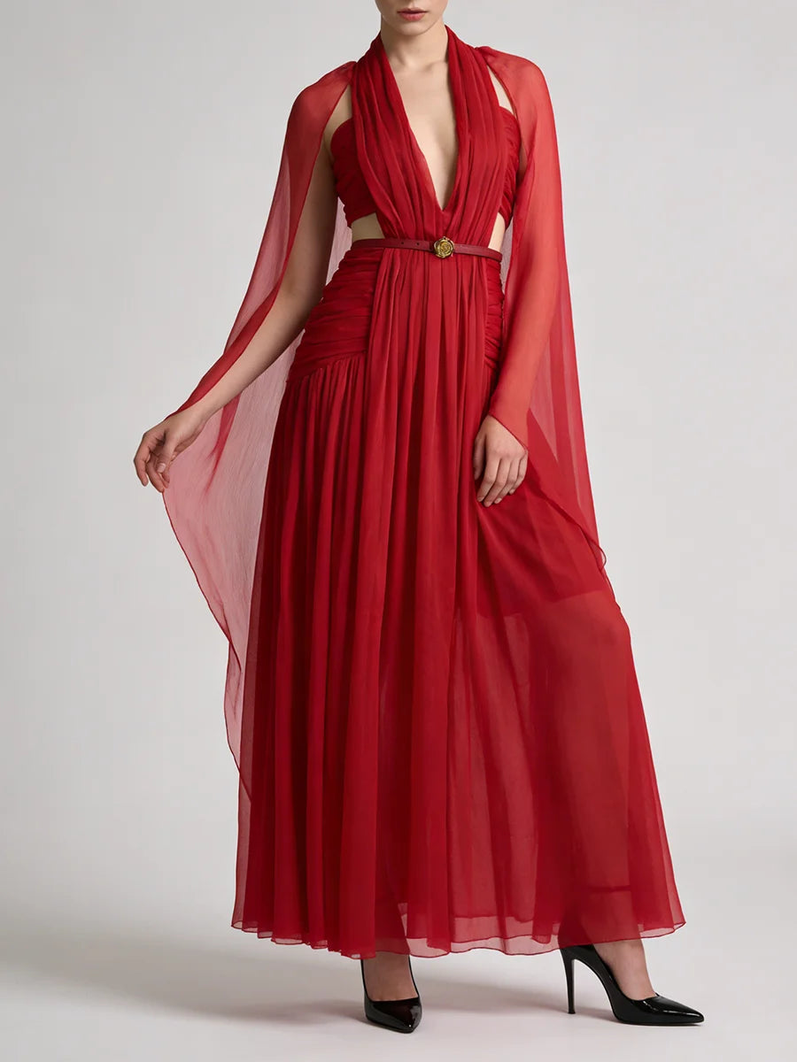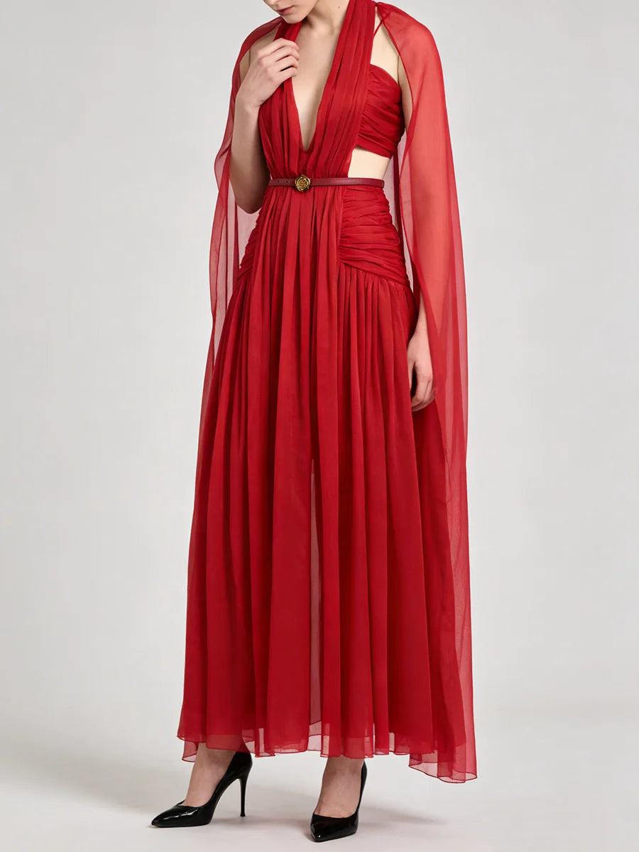 Trend4us Luxe Pleated Halter Cape Evening Gown