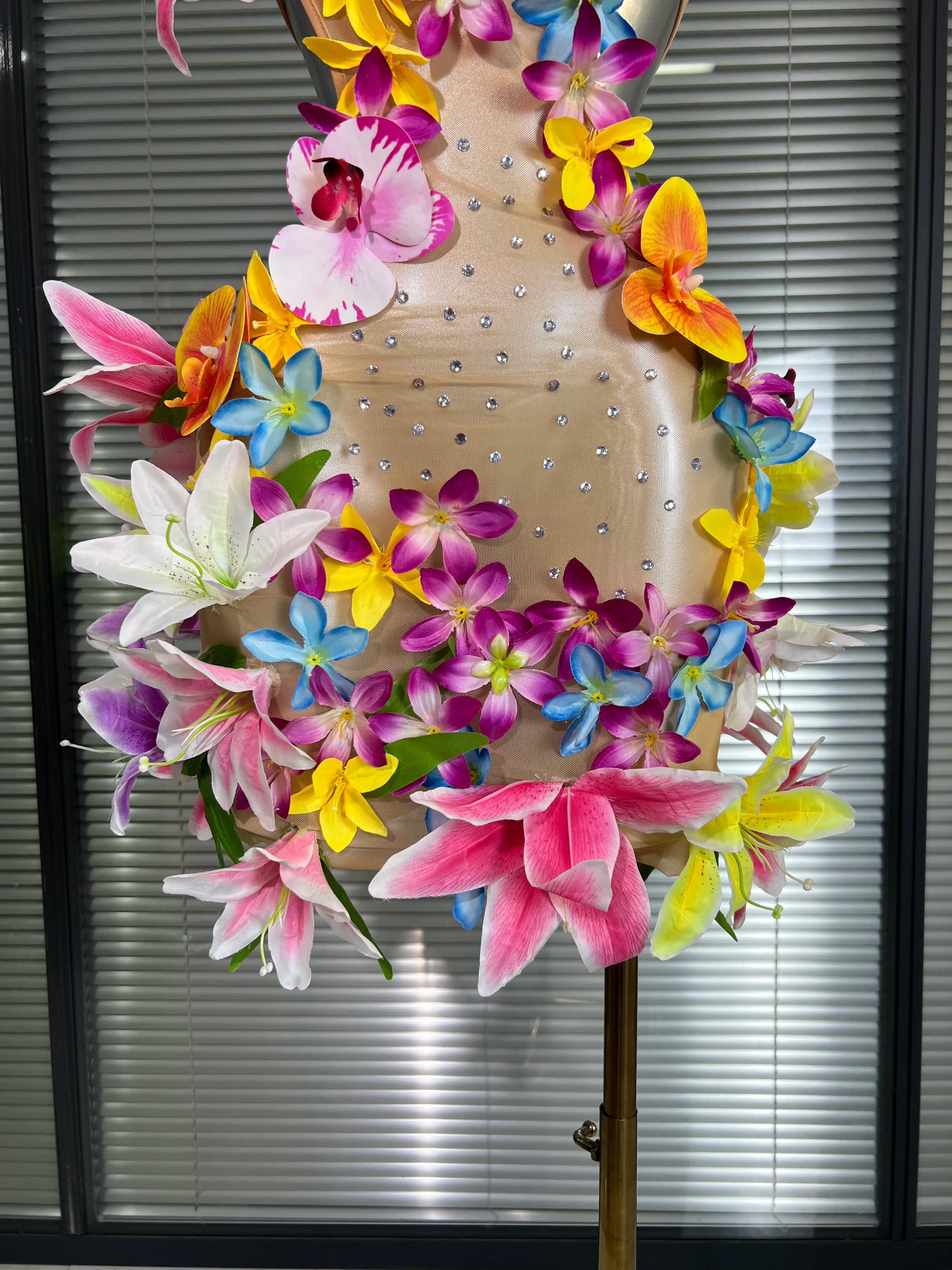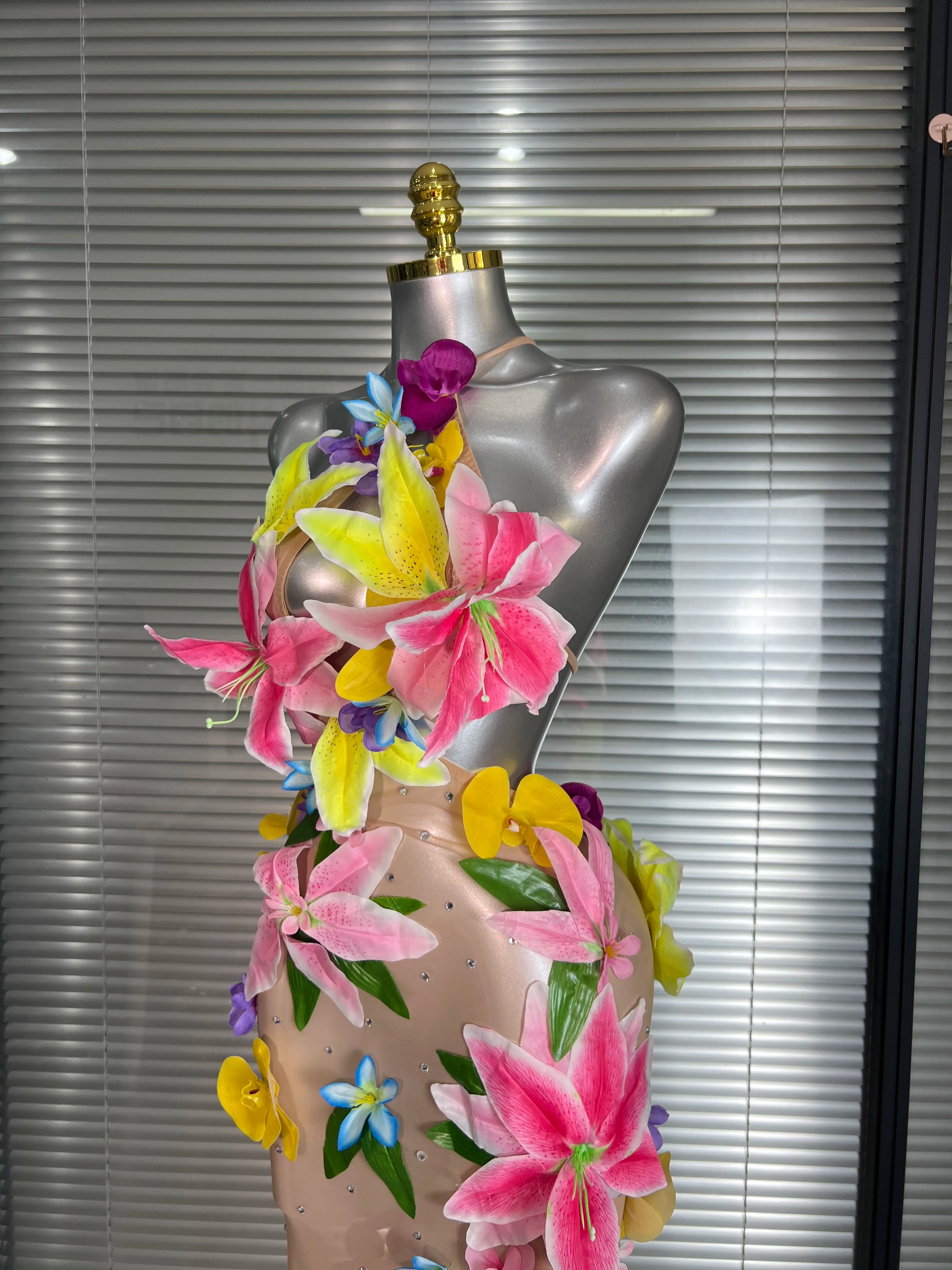 Step into the spotlight with our stunning 3D Floral Appliqué Mesh Performance Gown. Designed for the woman who commands attention, this gown features intricate three-dimensional floral appliqués that bloom across luxurious mesh fabric, creating a romantic, ethereal silhouette.