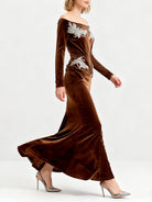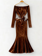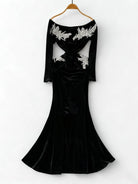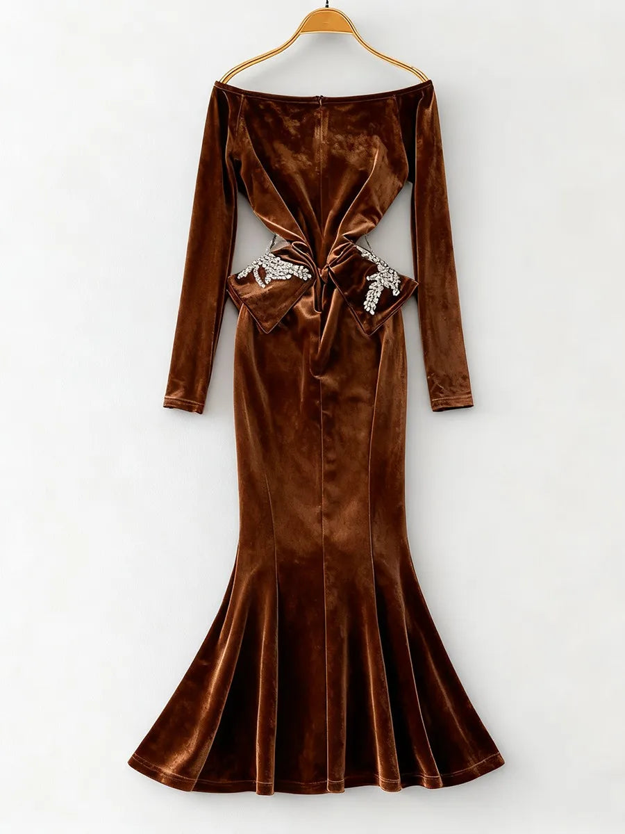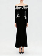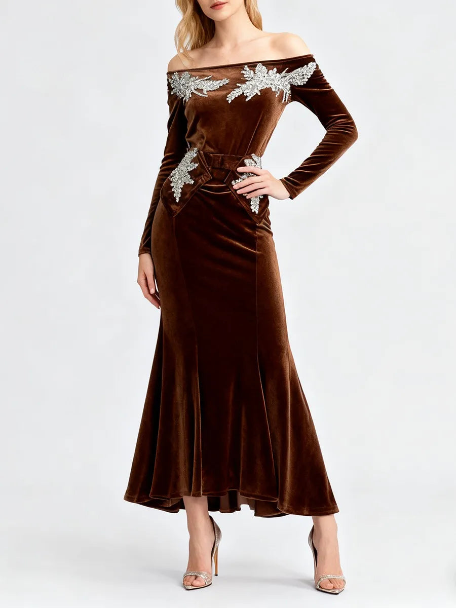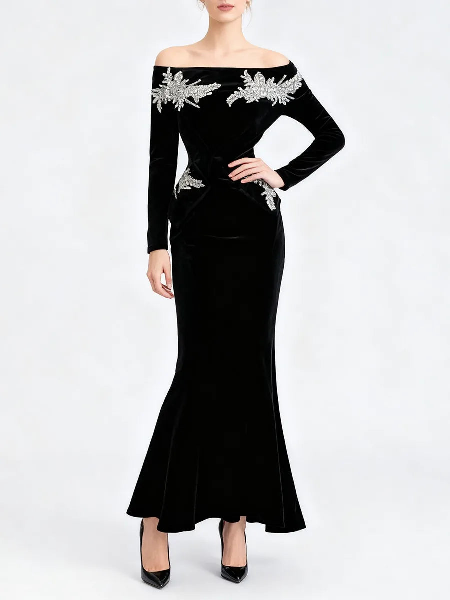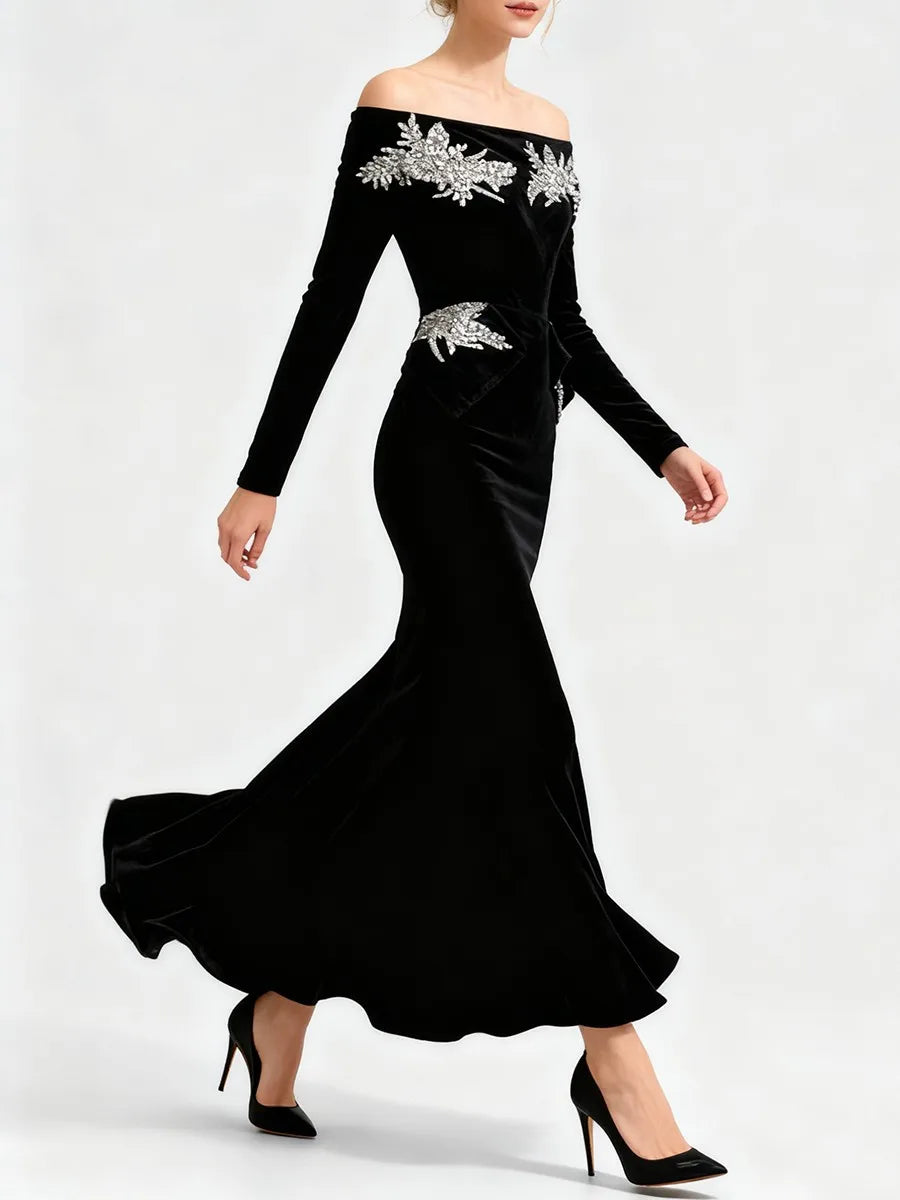 Trend4us Elegant Off-Shoulder Velvet Crystal Embellished Gown