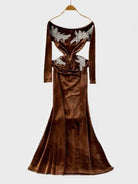 Radiate timeless elegance in the Trend4us Elegant Off-Shoulder Velvet Crystal Embellished Gown — a masterpiece of glamour and sophistication. Crafted from plush velvet, this gown gracefully contours the body, while its off-shoulder neckline highlights the décolletage with refined allure.