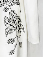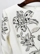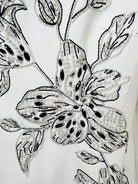 Embroidery: Hand-applied floral beadwork (crystal, silver, black)