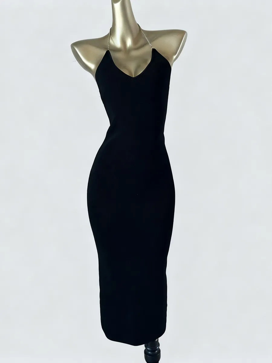 Trend4us Luxe Chain-Strap Backless Midi Dress