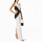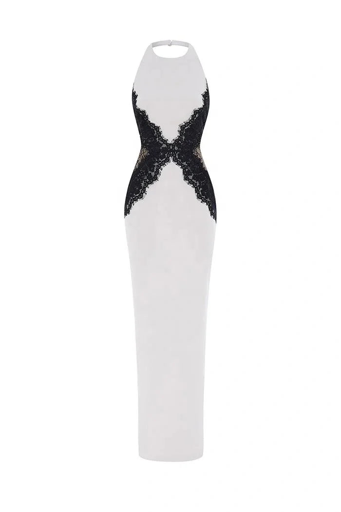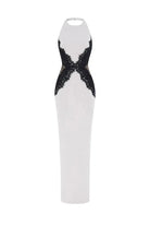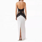 Trend4us Luxe Contrast Lace Sculpted Halter Maxi Dress