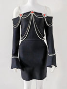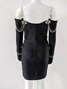 Trend4us Luxe Crystal Chain Cutout Off-Shoulder Dress