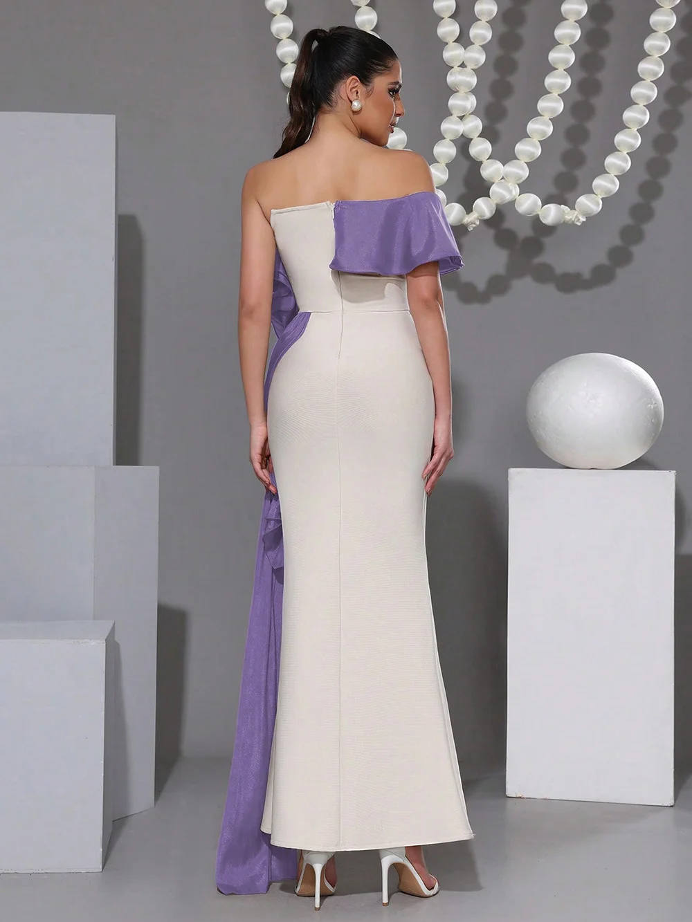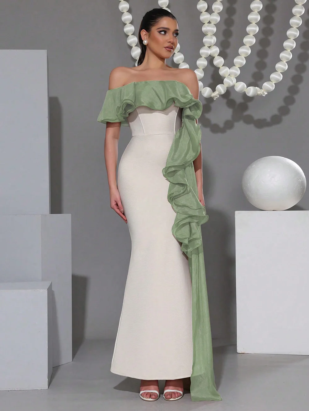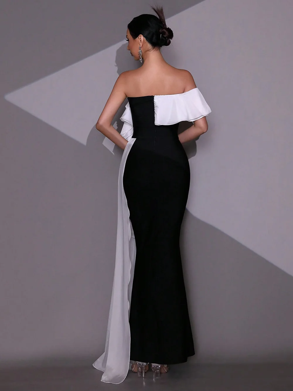 Material: High-stretch bandage fabric + soft organza ruffle