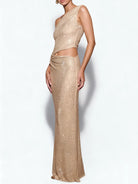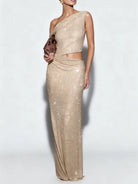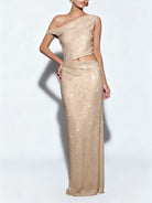 Trend4us Luxe One-Shoulder Crystal Cutout Maxi Dress