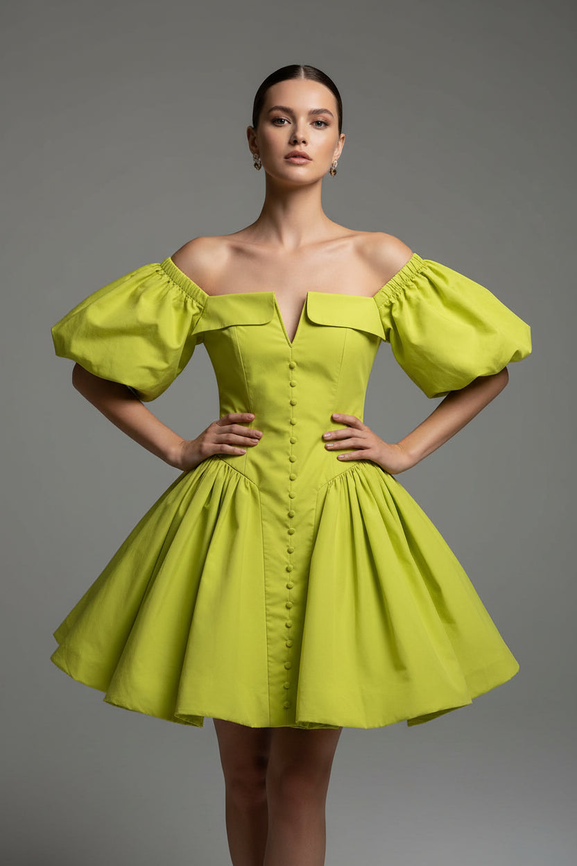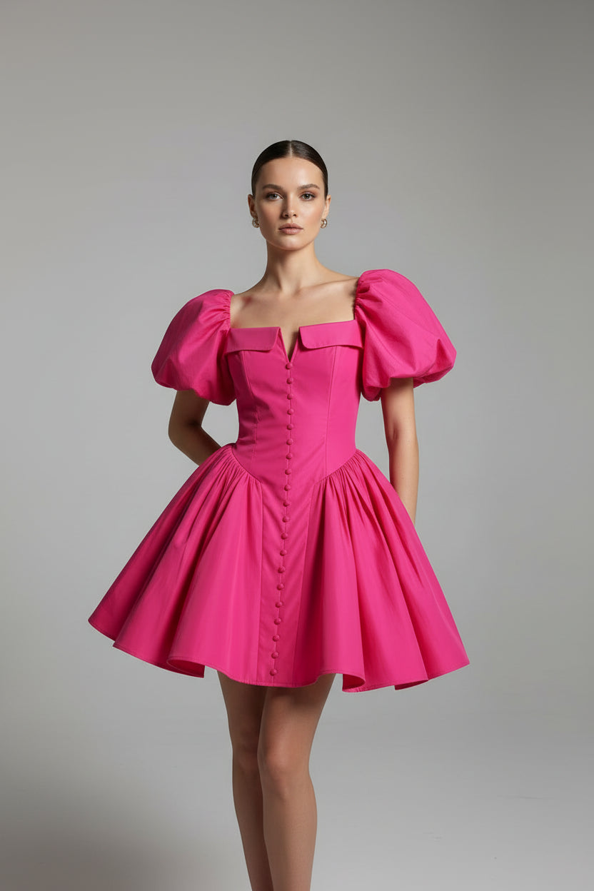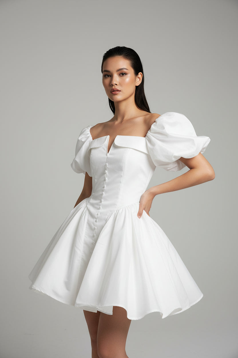 Make a statement in this luxe puff sleeve corset mini dress that perfectly balances romantic femininity with structured sophistication. The dramatic puff sleeves and fitted corset bodice create a stunning silhouette that's perfect for special occasions and unforgettable nights out.