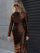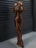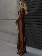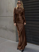 Elevate your evening wardrobe with this luxe satin maxi dress, crafted from fluid, high-quality fabric that drapes beautifully against the body. Strategic ruching creates a flattering silhouette while adding sophisticated texture and dimension. The floor-length cut delivers timeless elegance suitable for galas, weddings, and upscale events. Finished with refined seaming and a polished hem, this piece transitions seamlessly from red-carpet moments to premium occasions. A wardrobe essential for those who demand both style and substance.