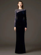 Trend4us Luxe Velvet Crystal-Embellished Illusion Sleeve Gown