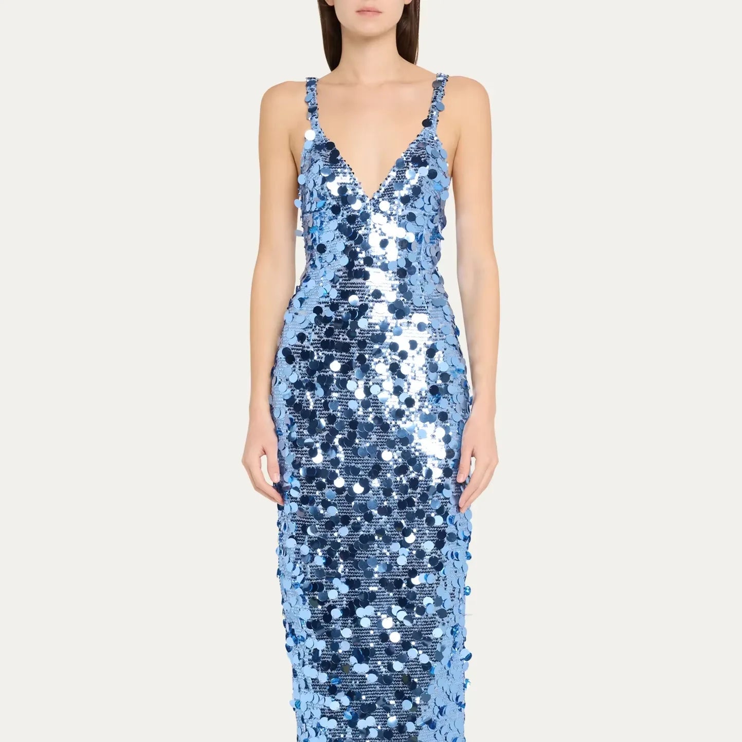 Trend4us Luxe Blue Sequin V-Neck Maxi Evening Gown