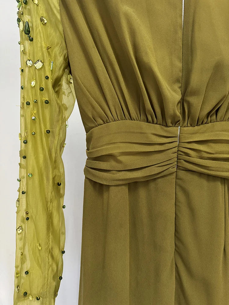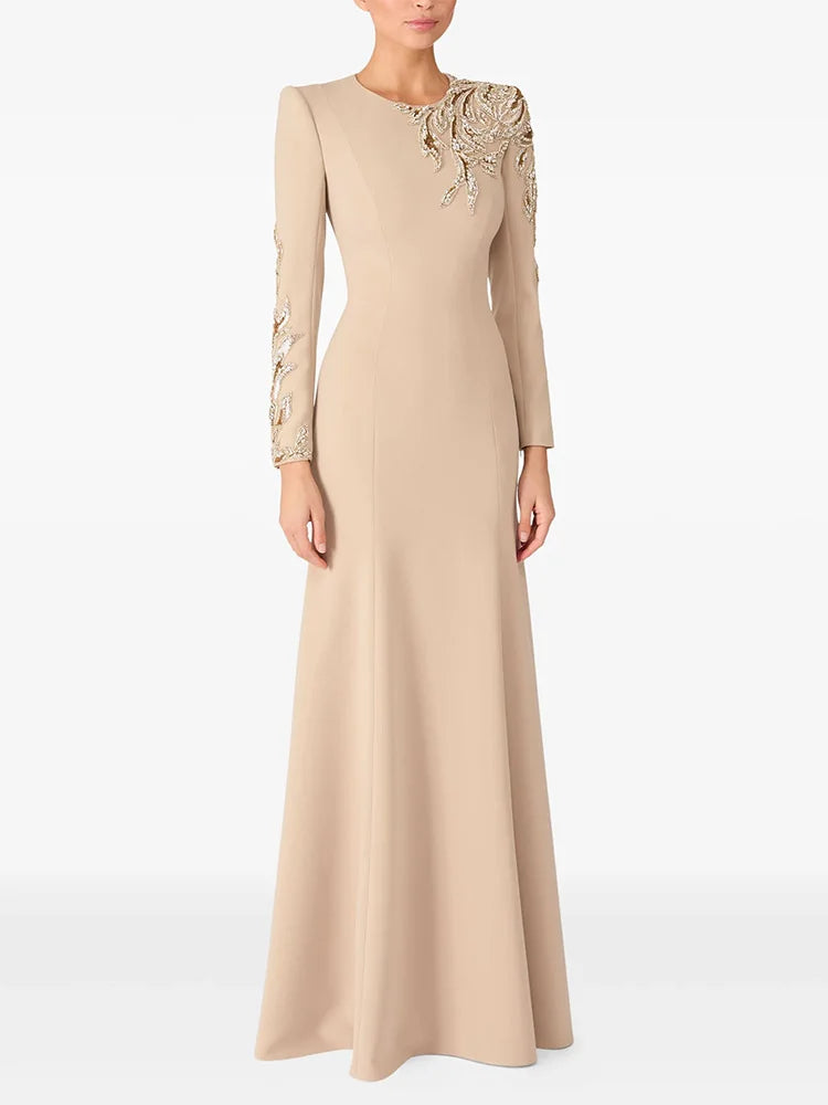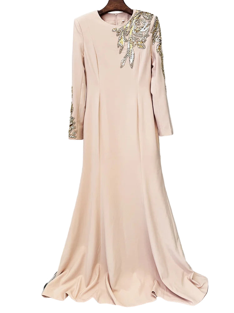 Trend4us Embellished Sequin Crystal Vintage Long-Sleeve Gown