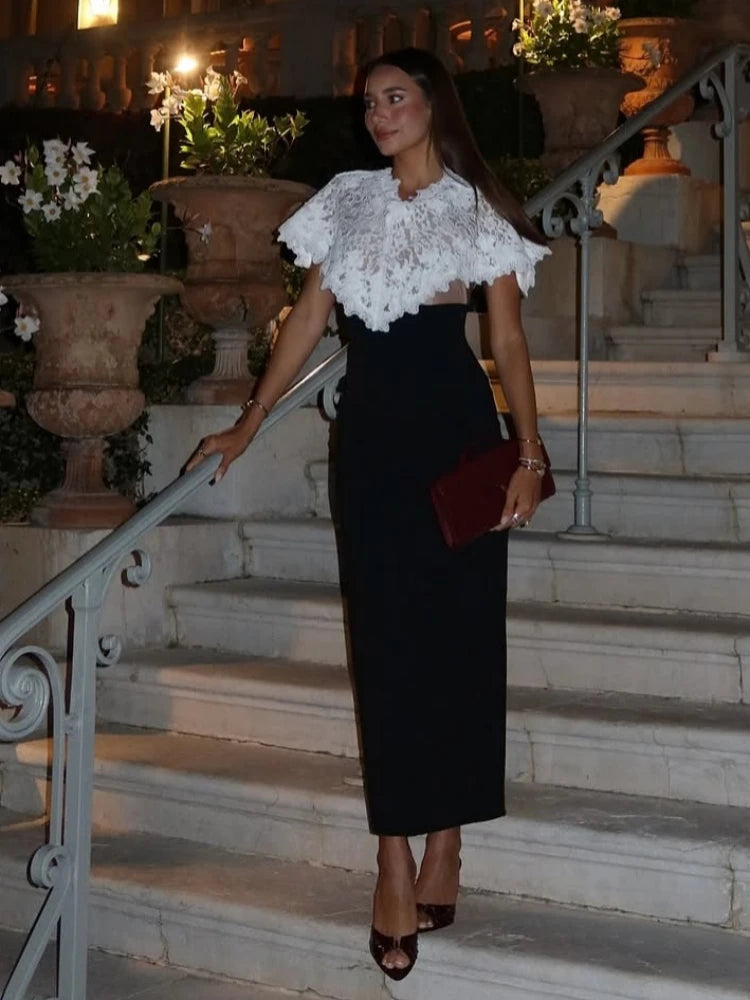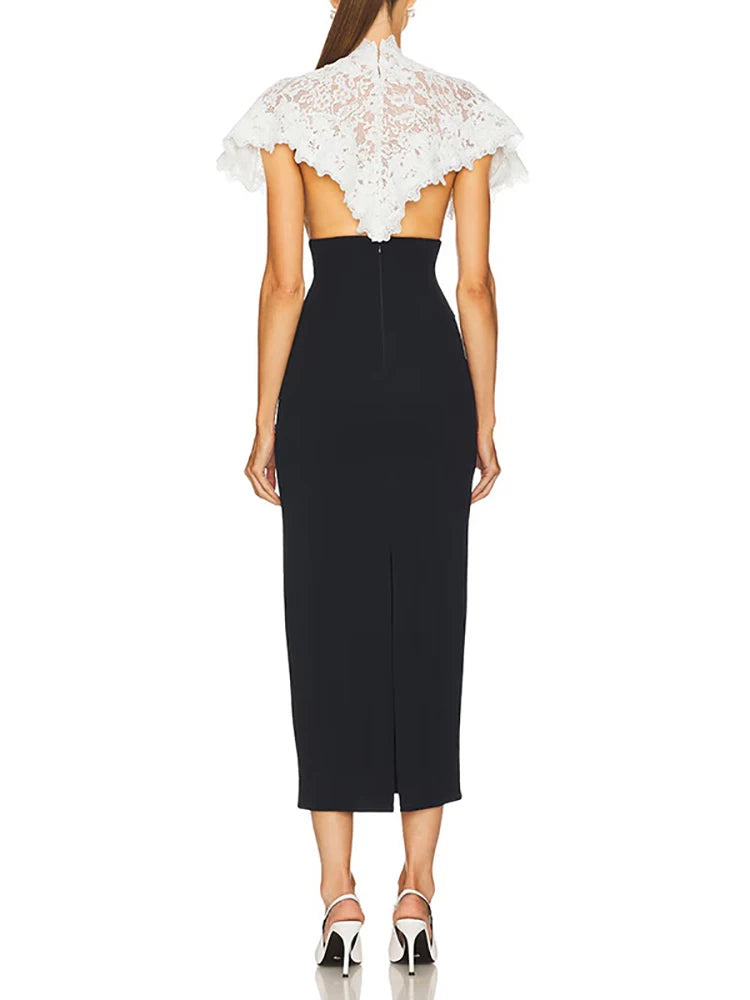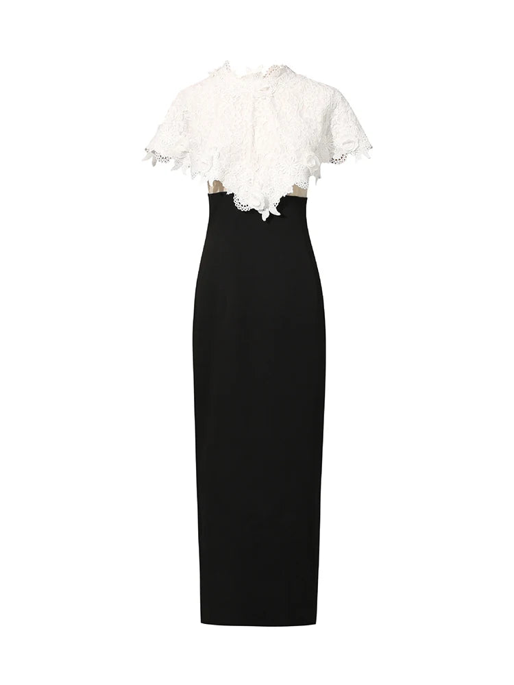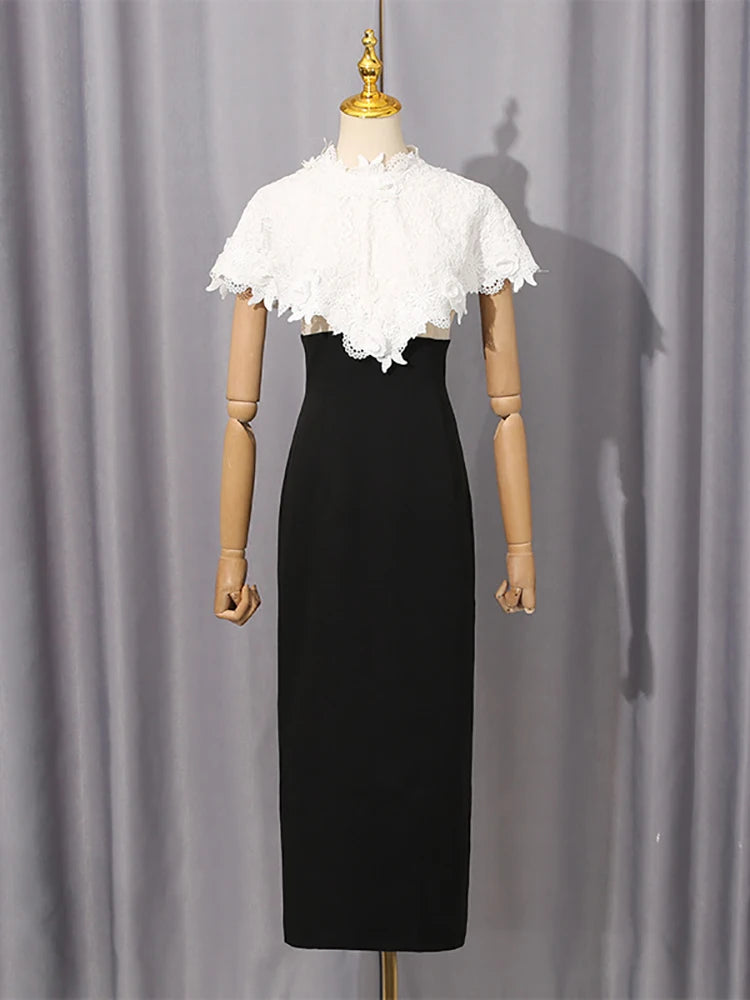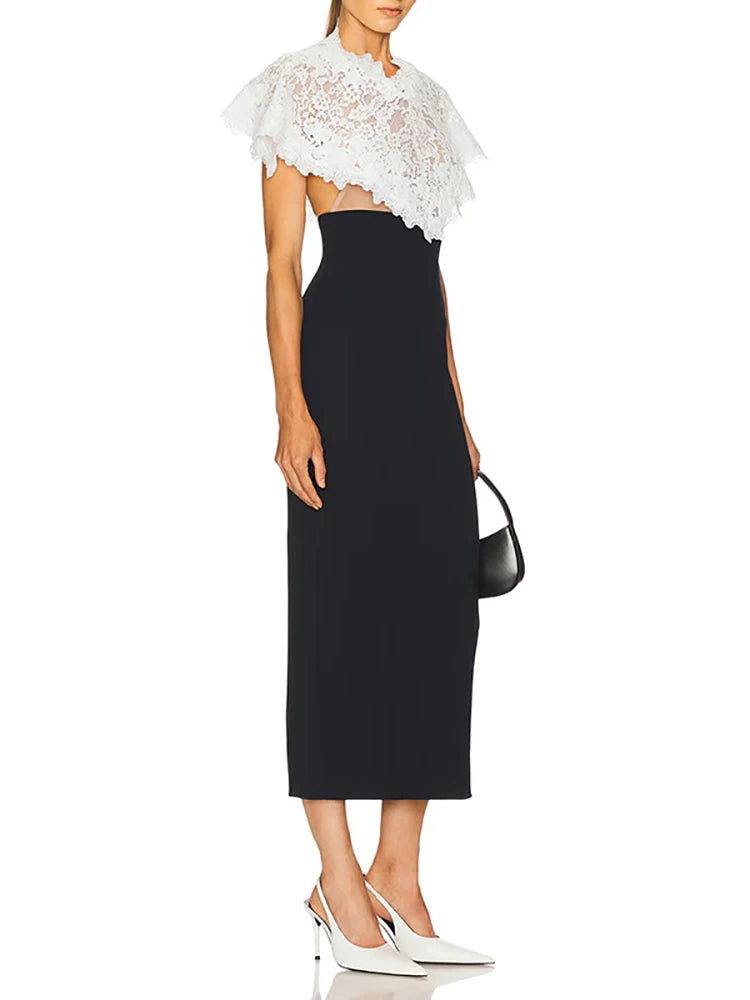 Trend4us Elegant Lace Cape Two-Piece Midi Dress