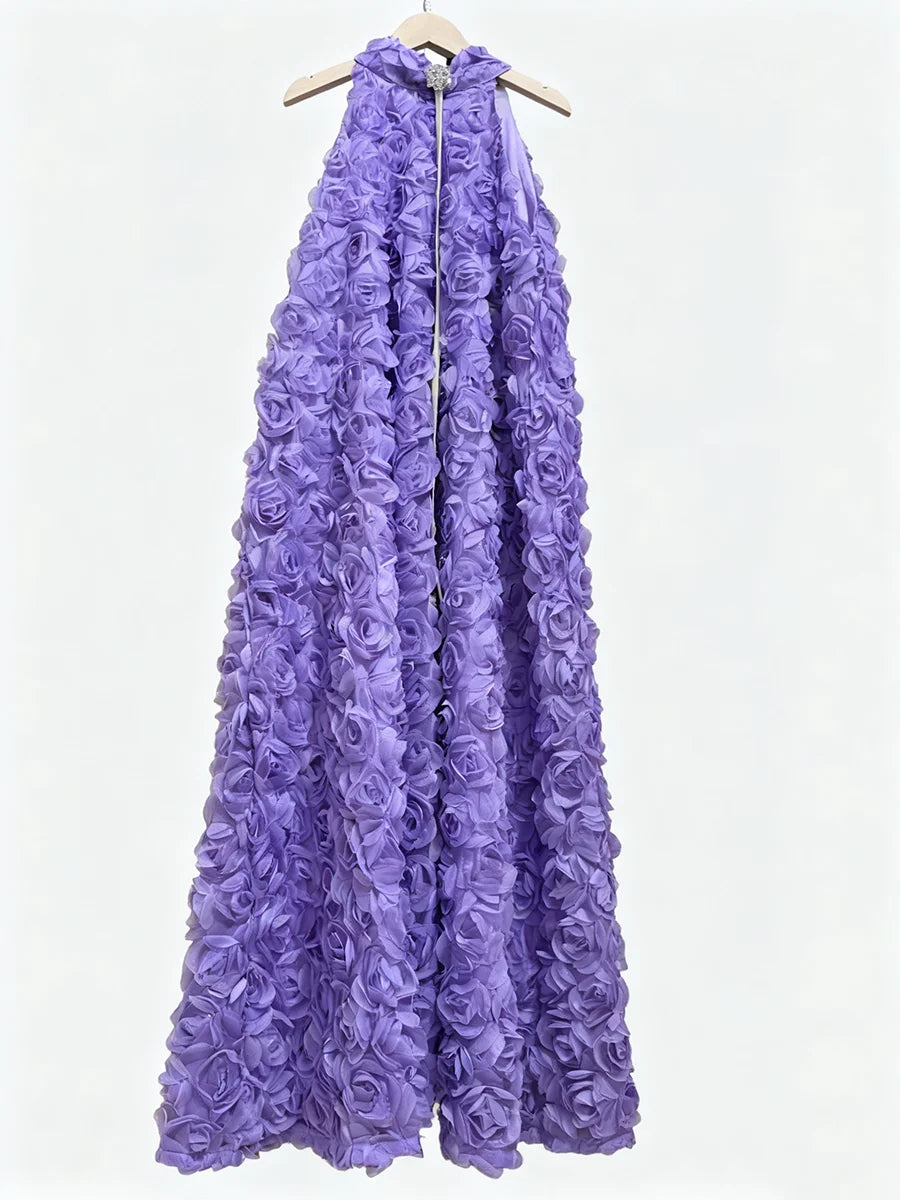 Trend4us Elegant 3D Floral Halter Slit Maxi Dress