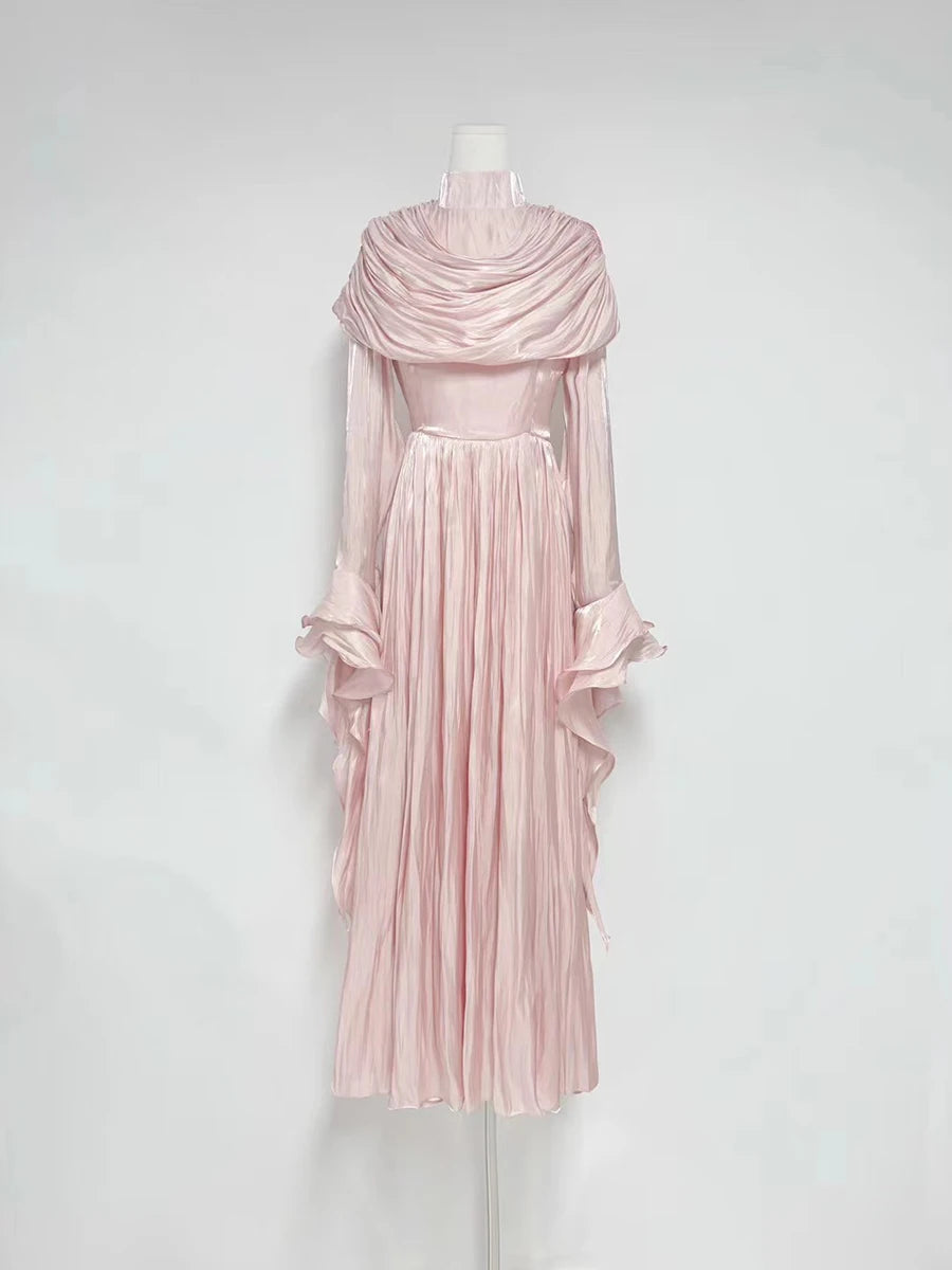 Trend4us Luxe Draped High-Neck Pleated Maxi Gown