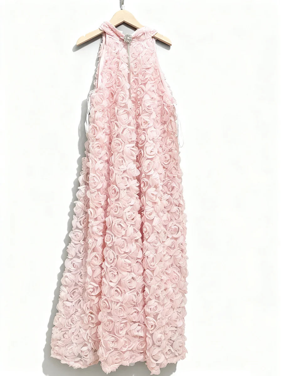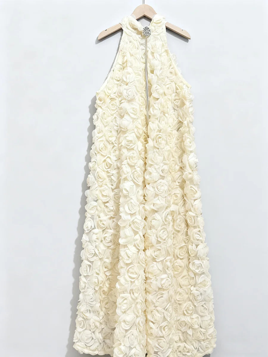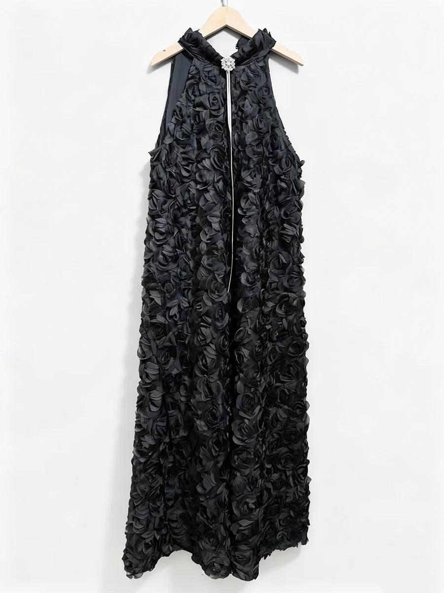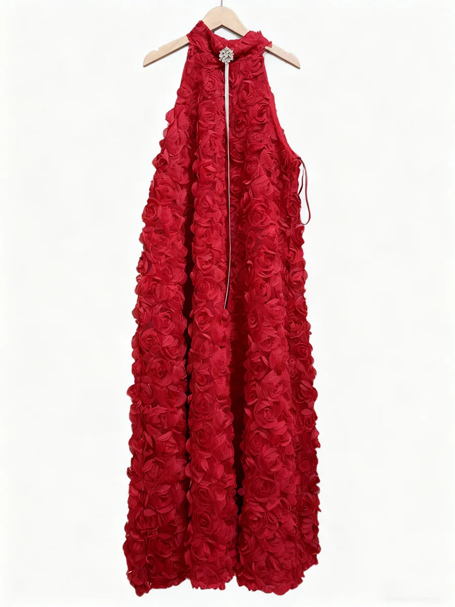 Trend4us Elegant 3D Rose Appliqué Halter Midi Dress