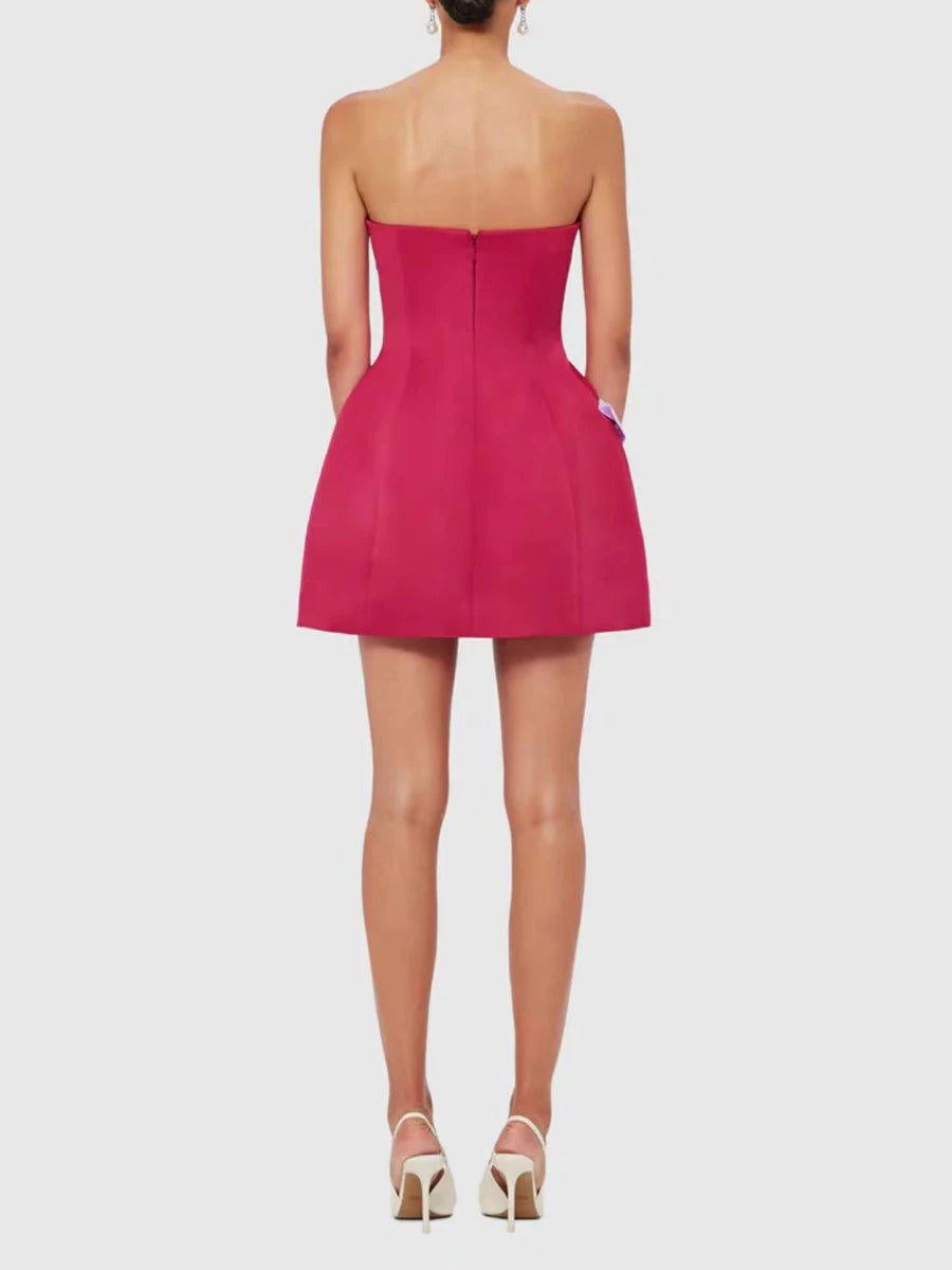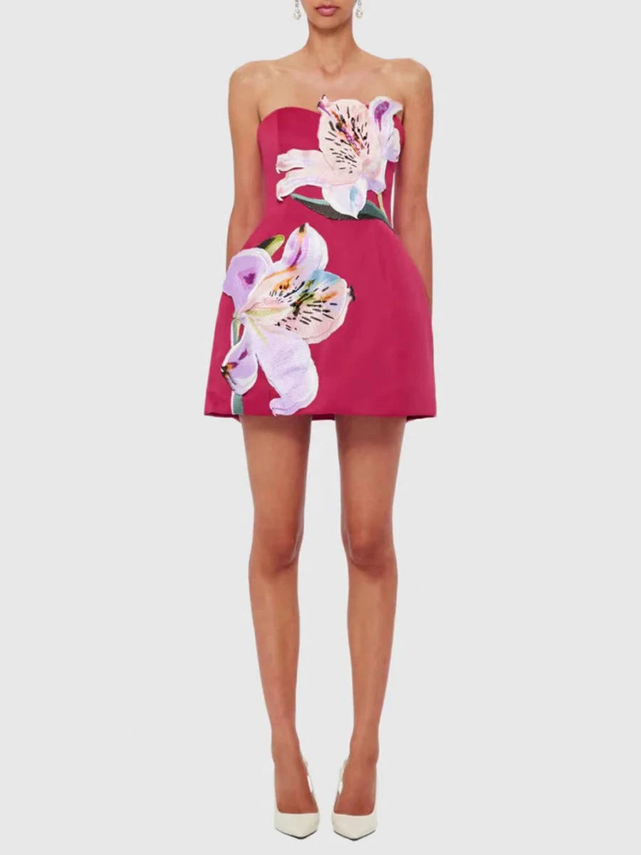 Trend4us Luxe Strapless 3D Floral Appliqué Mini Dress