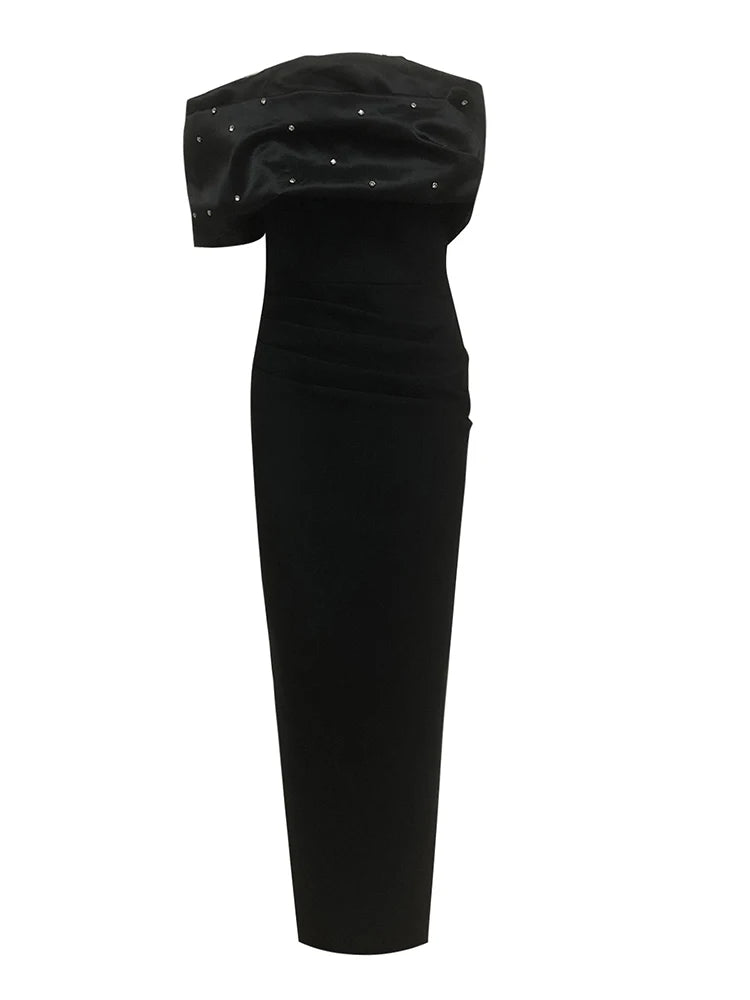 Trend4us Luxe One-Shoulder Crystal Cutout Maxi Dress