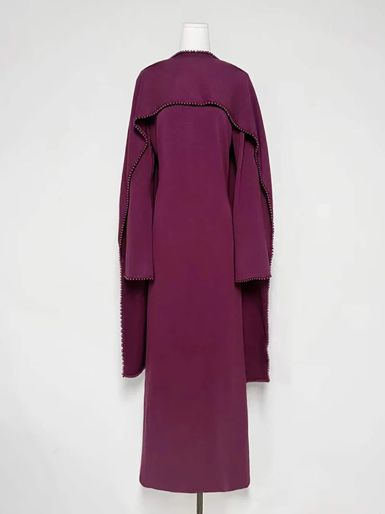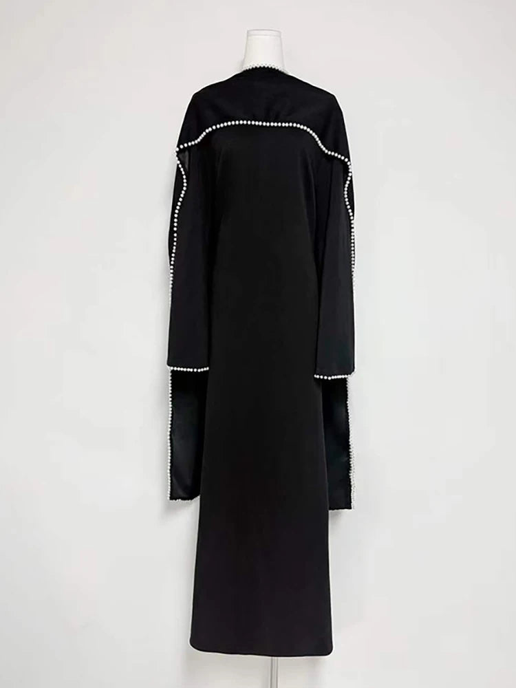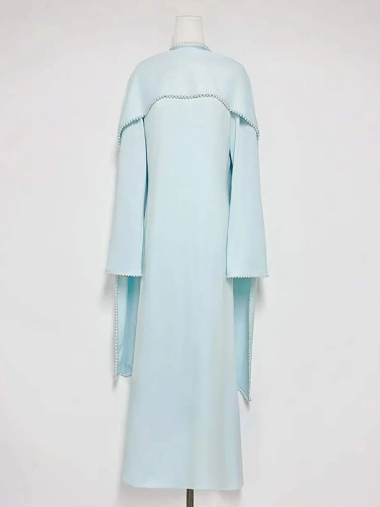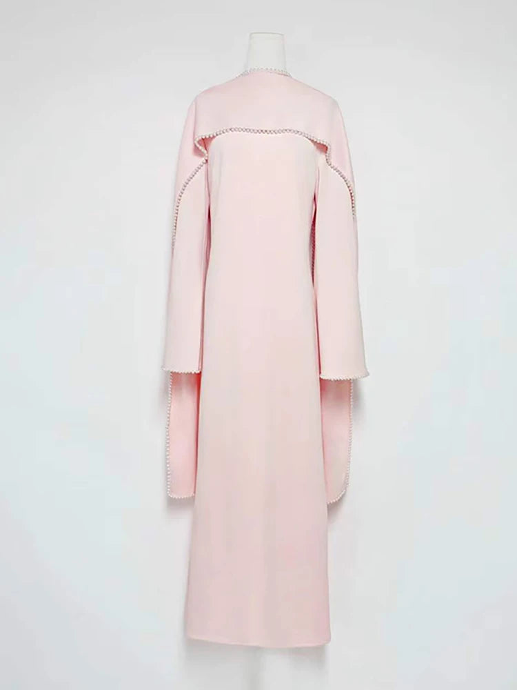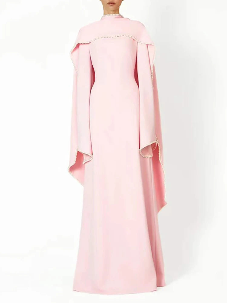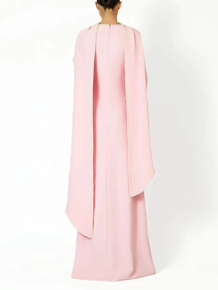 Trend4us Luxe Pearl-Trimmed Cape Sleeve Maxi Gown