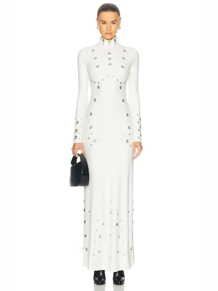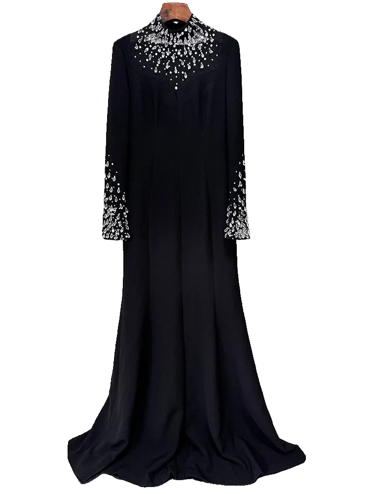 Trend4us Luxe Studded High-Neck Maxi Dress
