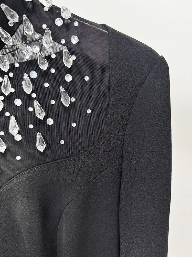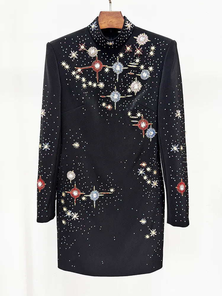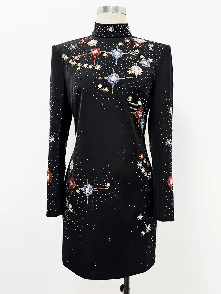 Trend4us Crystal Beaded Long Sleeve Mini Dress