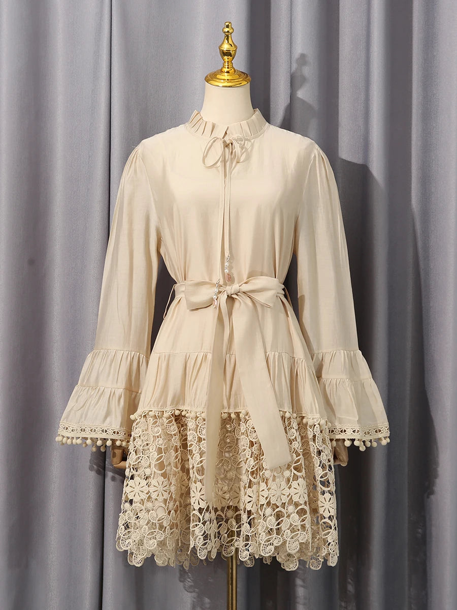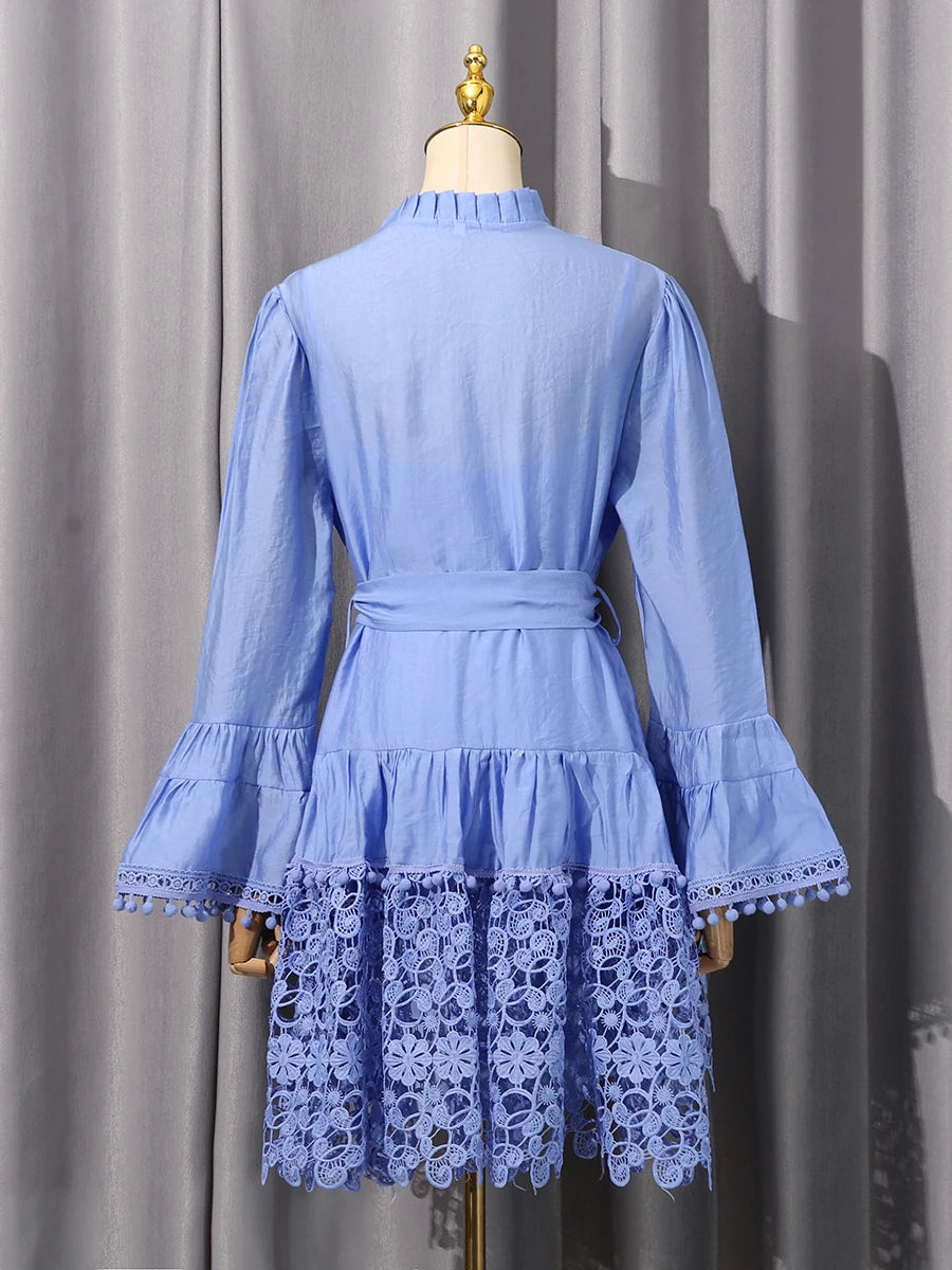 Trend4us Elegant Lace-Trimmed Ruffle Sleeve Mini Dress