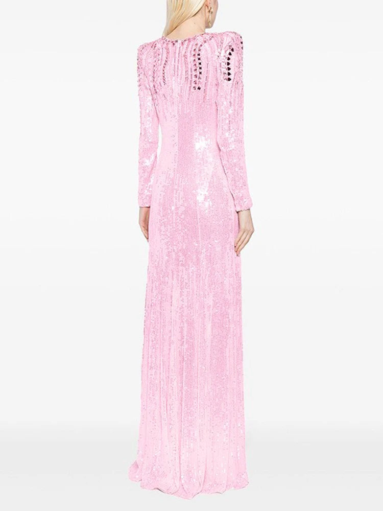 Trend4us Luxe Crystal Embellished Sequin Long-Sleeve Gown