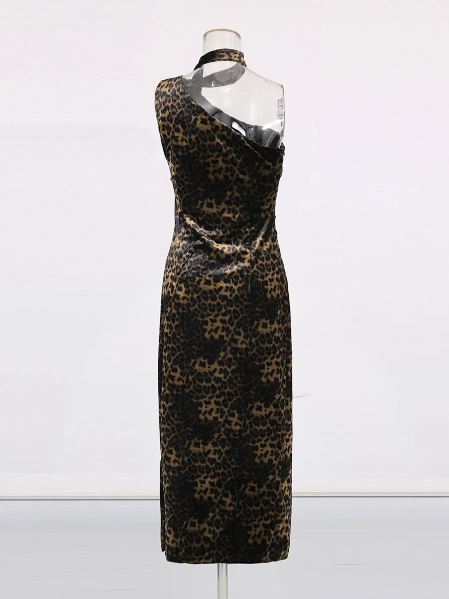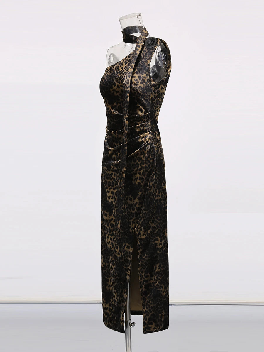 Trend4us Luxe One-Shoulder Velvet Slit Maxi Dress