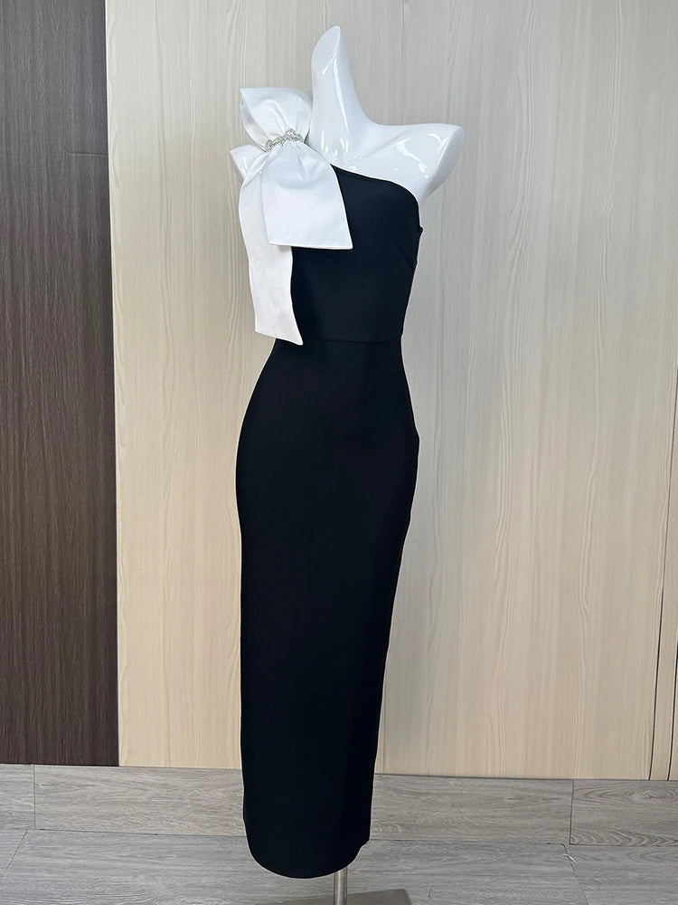 Trend4us Elegant One-Shoulder Bow Accent Maxi Dress