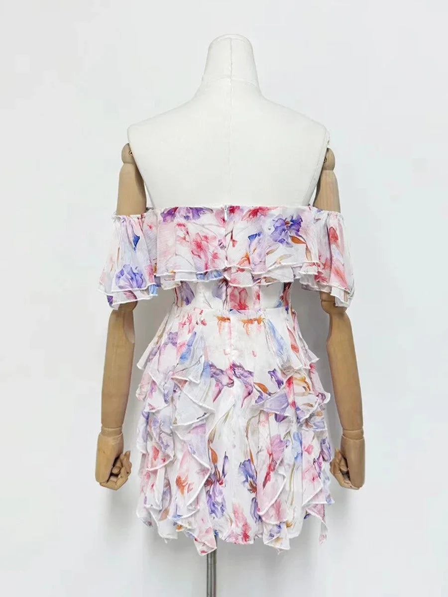 Trend4us Off-Shoulder Layered Floral Ruffle Mini Dress