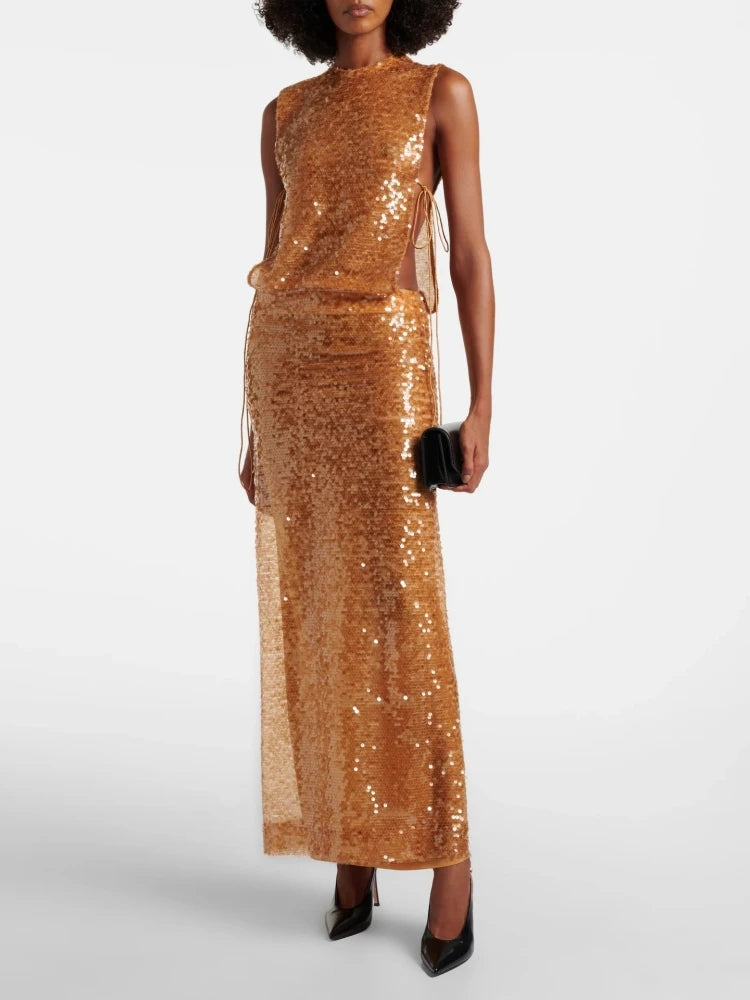 Trend4us Glamorous Sequin Side-Tie Maxi Dress