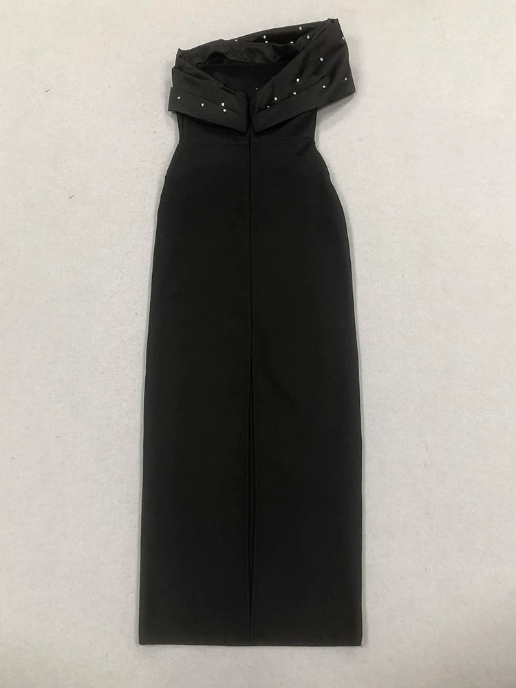 Trend4us Elegant Off-Shoulder Crystal-Dotted Maxi Dress