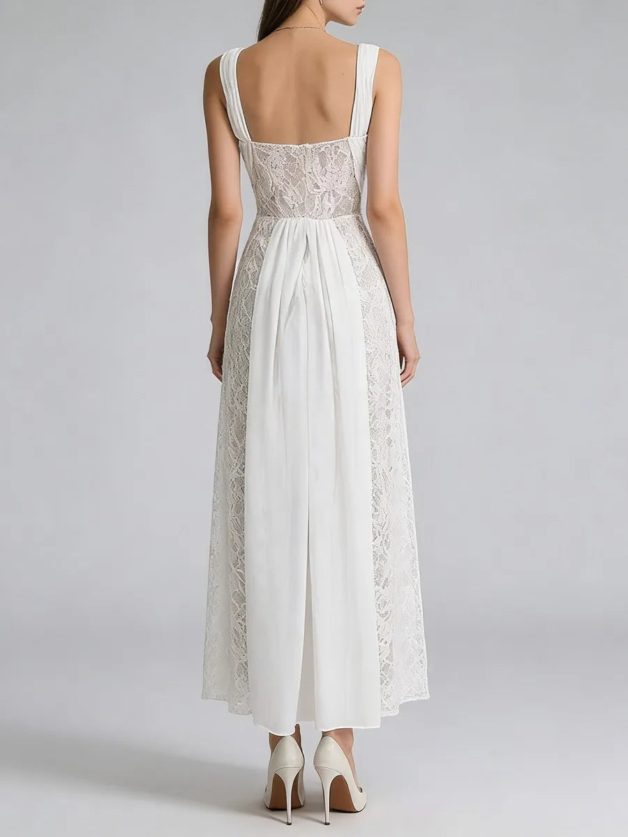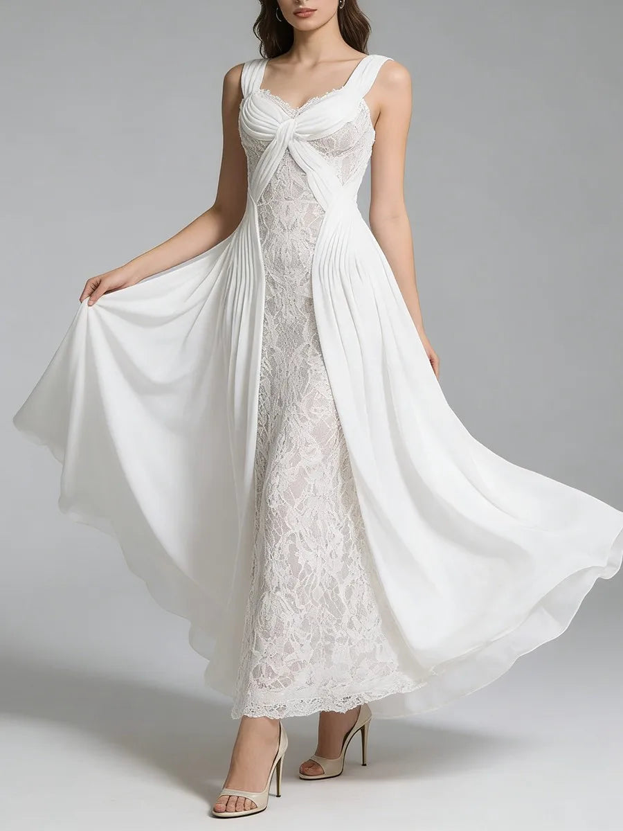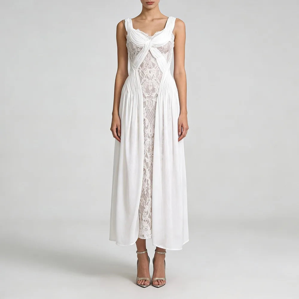 Trend4us Elegant Lace Panel Draped Sleeveless Maxi Dress