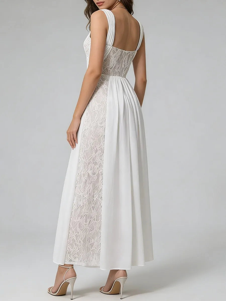 Whether you're attending a formal wedding, gala, black-tie event, or milestone celebration, this maxi dress delivers red-carpet-worthy elegance. The ankle-length hem creates a graceful silhouette that flows beautifully with every step, while the lace accents add a touch of romance and luxury. Pair with metallic heels, statement earrings, and an elegant updo for a look that commands attention and exudes confidence.