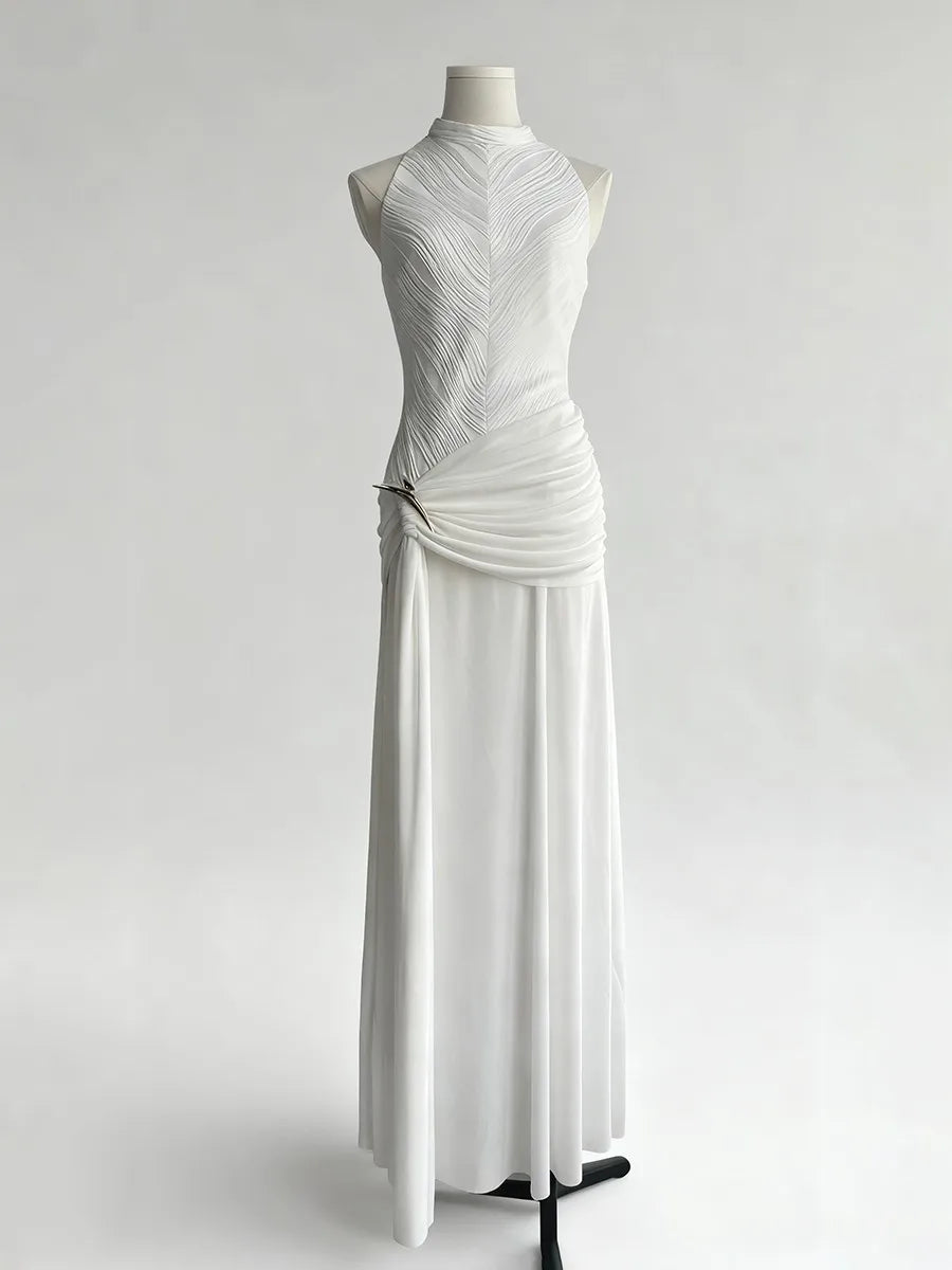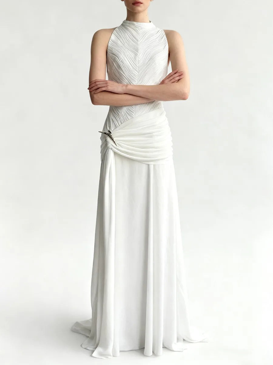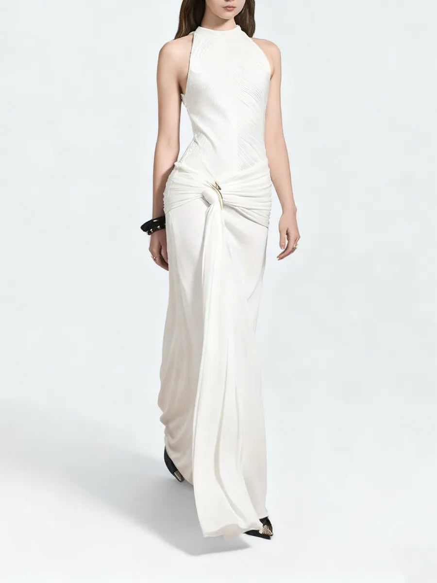 Trend4us Elegant Ruched Halter Drape Maxi Gown