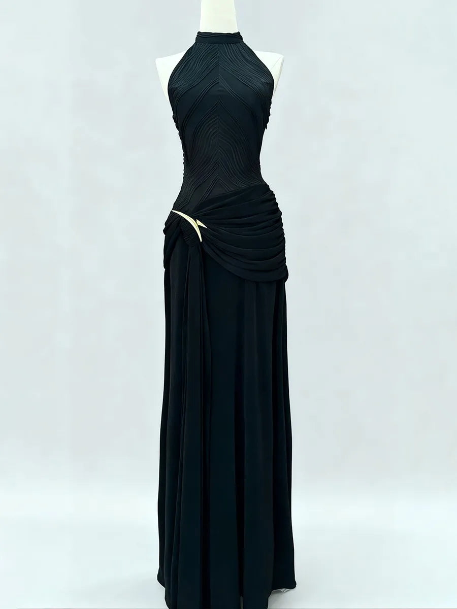 Step into timeless sophistication with the Trend4us Elegant Ruched Halter Drape Maxi Gown, a masterpiece of refined minimalism and sculptural detailing. Designed to flatter from every angle, this gown features a beautifully textured halter bodice with artful directional ruching that creates a subtle hourglass illusion while adding depth and dimension to the silhouette.