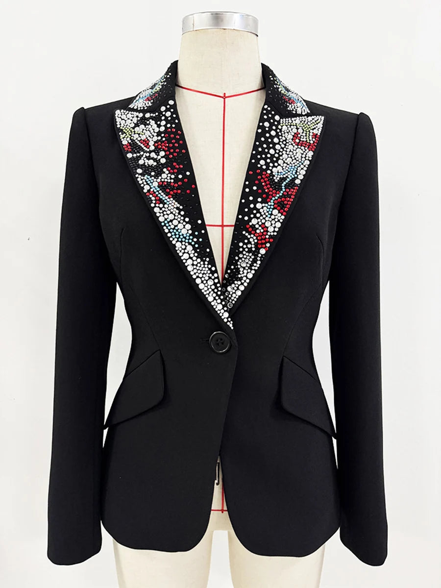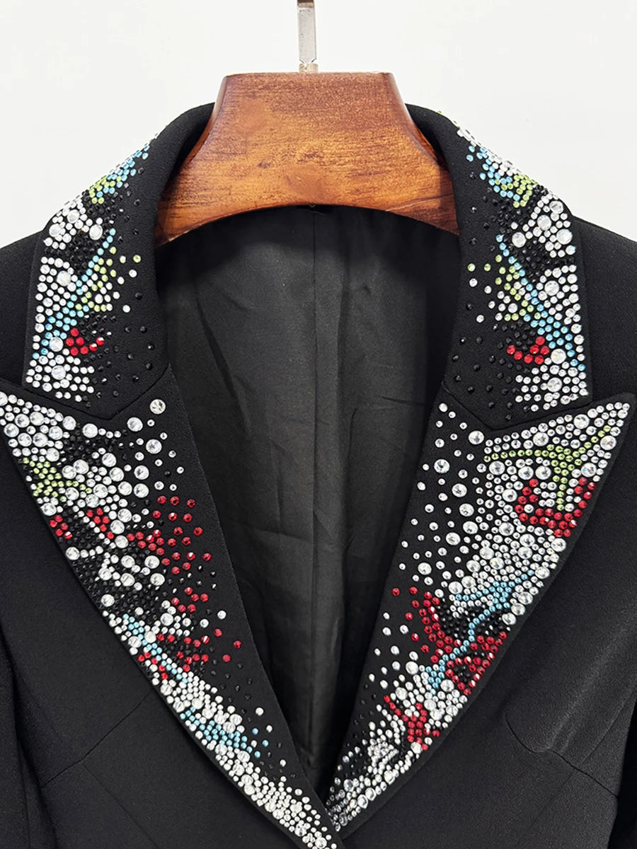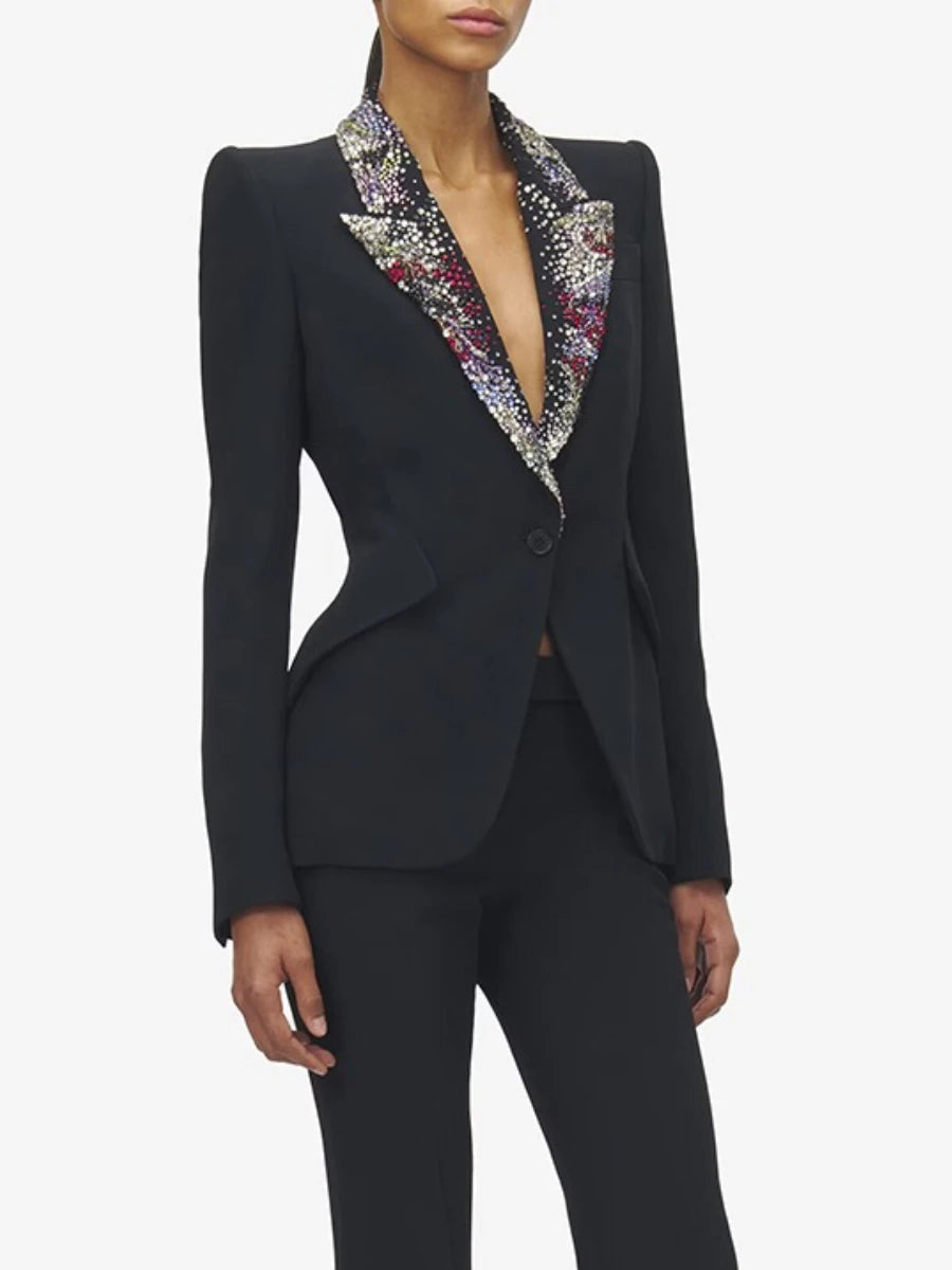 Trend4us Luxe Crystal-Embellished Lapel Tailored Blazer Jacket